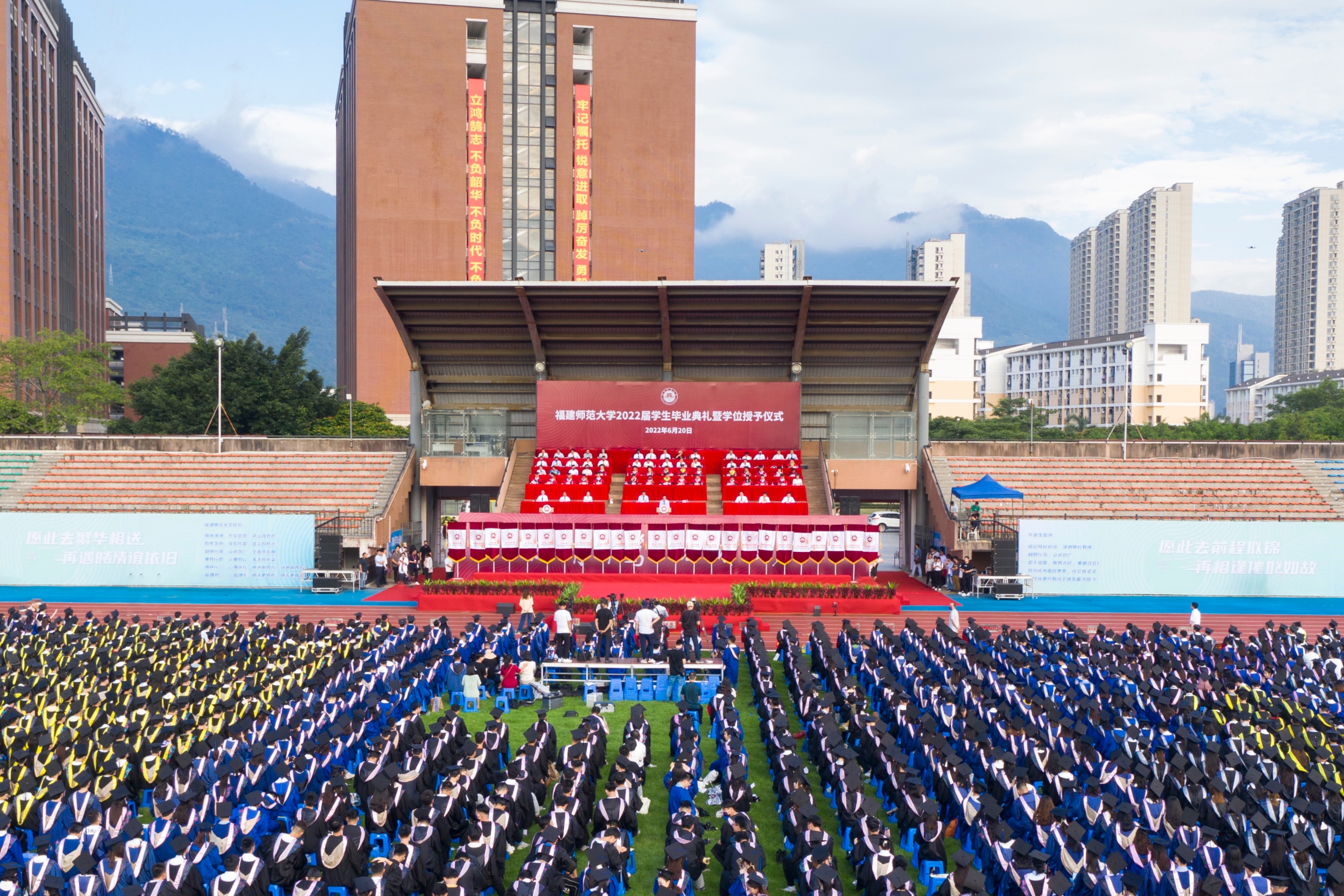 毕业典礼于6月20日上午在旗山校区东区田径场隆重举行。校领导,机关部处负责人,各学院党政负责人、教职工代表、毕业班辅导员,全体2022届毕业生参加了典礼。典礼由校党委副书记涂荣主持。