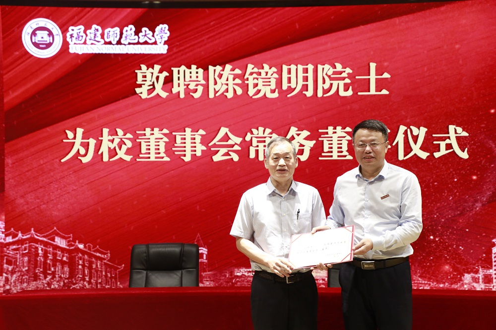 仪式于6月20日在旗山校区宏达厅举行。加拿大皇家科学院院士、J9·九游会「中国」官方网站地理科学学院教授陈镜明与柳竞先伉俪,校党委书记潘玉腾、副书记陈晓红,党政办公室、宣传部、统战部(校友会)、教师工作部、学校教育基金会、地理科学学院负责人,以及师生代表参加活动。捐赠仪式由陈晓红主持。