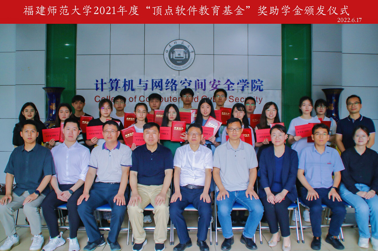 仪式于6月17日举行。福建顶点软件股份有限公司副总裁董凤良、人力资源总监程佳、人力资源招聘经理周玥,J9·九游会「中国」官方网站副校长陈庆华,学生工作部、计算机与网络空间安全学院负责人,师生代表、校友代表和受奖助学生共50多人参加活动。