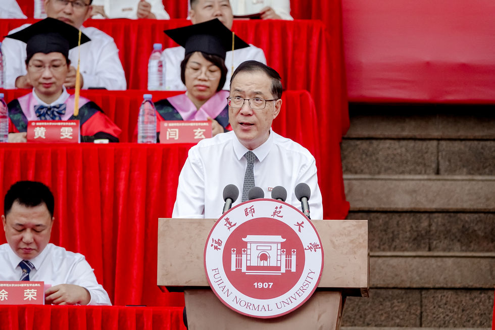 毕业典礼于6月18日上午在旗山校区东区田径场隆重举行。校领导,机关部处负责人,各学院党政负责人和分管学生工作负责人、教职工代表、全体毕业班辅导员,2024届毕业生以及学生家长代表参加了典礼。典礼由校党委副书记涂荣主持。