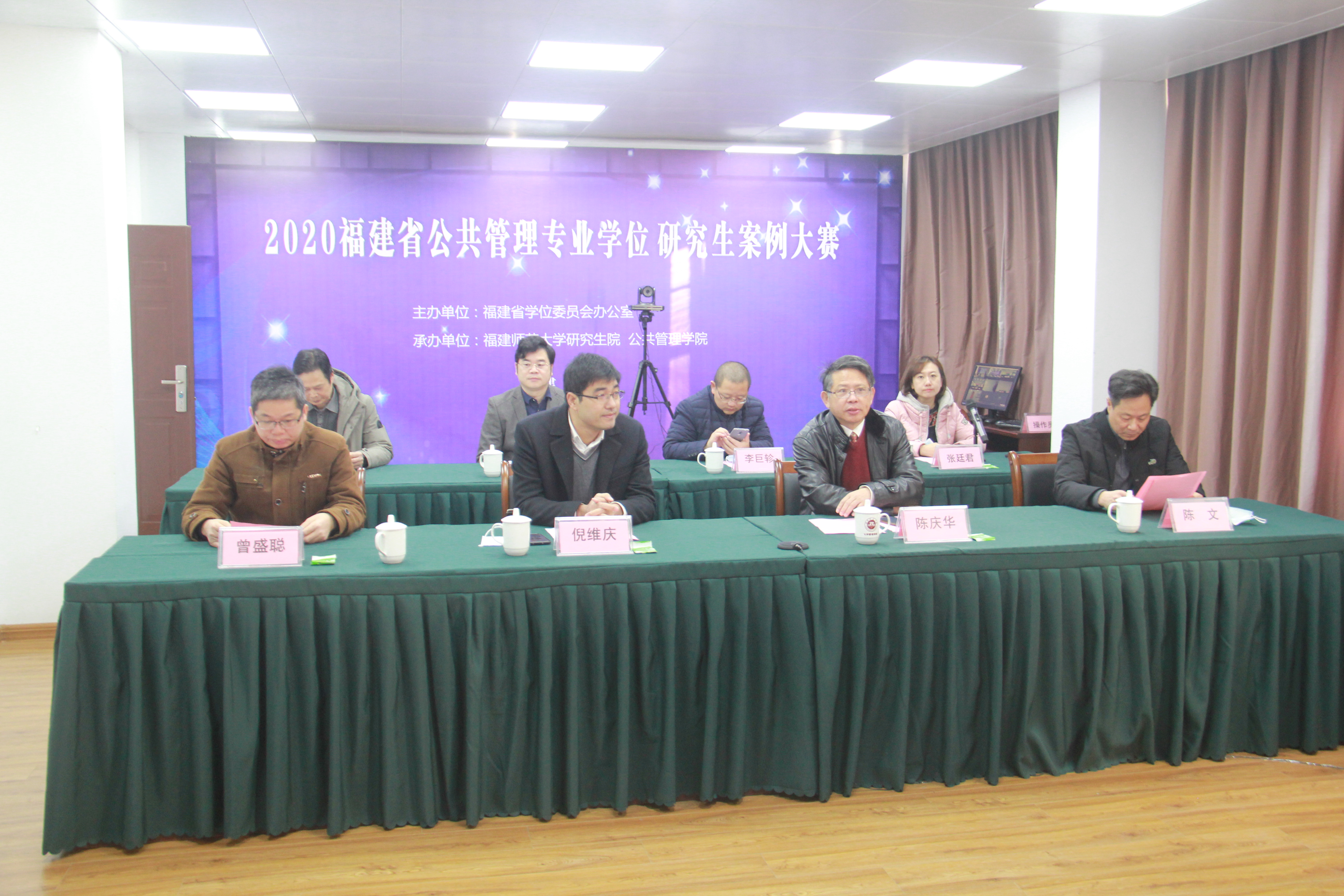 1月9日,由福建省学位委员会办公室主办,J9·九游会「中国」官方网站研究生院、公共管理学院承办的2020年福建省公共管理专业学位研究生案例大赛总决赛(线上)在仓山校区举行。副校长陈庆华,省教育厅高教处副处长倪维庆,研究生院、公共管理学院、校MPA教育中心相关负责人出席现场开幕式,教育部高等学校公共管理类学科专业教学指导委会副主任委员孙萍教授等专家评委同步参加线上开幕式。开幕式由公共管理学院负责人主持。
