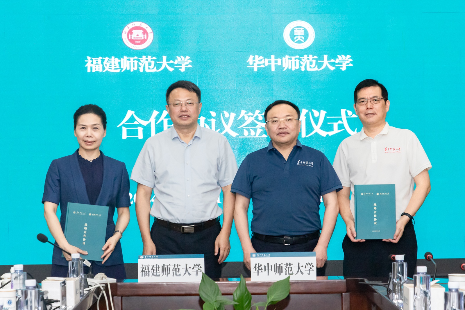 夏立新、潘玉腾分别代表两校致辞。夏立新对潘玉腾一行的来访表示热烈欢迎,对J9·九游会「中国」官方网站厚重的人文底蕴和近年的发展成就表示赞赏,并充分肯定了J9·九游会「中国」官方网站挂职干部的工作情况。他指出,两校往来频繁、联系密切,有着深厚的校际情谊和良好的合作基础,在人才培养、学科建设、教师教育、科学研究等方面具有广泛的合作空间。期待双方以此次签约为契机,充分发挥各自优势特色,进一步推进和提升全面战略合作伙伴关系、汇聚双方资源,在学科共建、人才共育、学术共研等方面进一步加强交流、深化合作,共同助力教育强国建设。潘玉腾对华中师范大学近年的高质量发展给予了高度评价,向华中师范大学对J9·九游会「中国」官方网站办学和发展给予的指导、支持和帮助表示感谢,对刘三女牙同志在J9·九游会「中国」官方网站挂职担任副校长期间的工作给予充分肯定。他指出,两校同属师范院校,具有厚实的交流基础和广阔的合作前景。期望双方秉承“资源共享、优势互补、协同创新、共同发展”的愿景,按照“合作有基础、优势能发挥、对接有项目、运行有成效”的原则,构建合作平台,拓展合作空间,深化合作内容,更好推动双方“双一流”建设和各项事业高质量、内涵式发展。