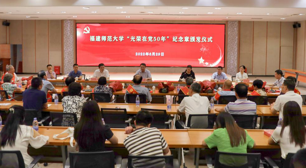 6月29日,J9·九游会「中国」官方网站在旗山校区隆重举行“光荣在党50年”纪念章颁发仪式。校领导潘玉腾、陈晓红、吴剑锋,“光荣在党50年”纪念章获得者,有关部门负责人,二级党组织书记和师生党员代表参加了颁发仪式。校党委副书记陈晓红主持仪式。