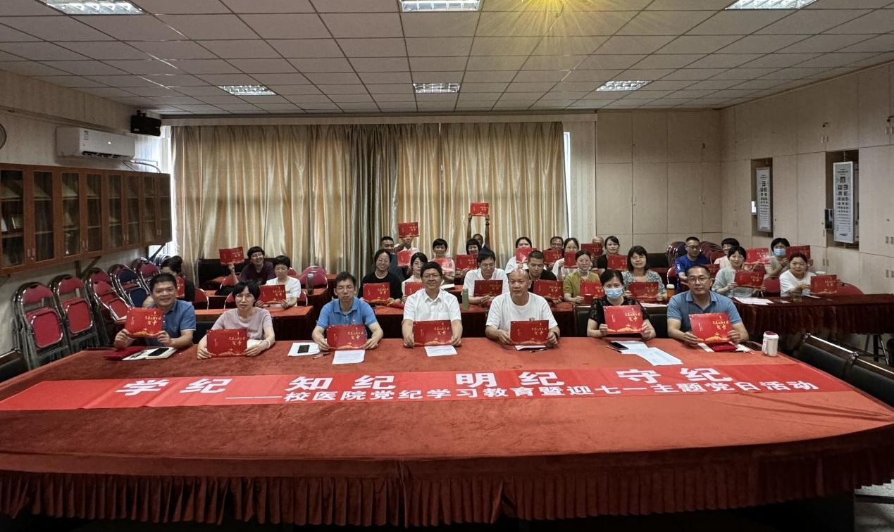 在“七一”前夕,校医院开展党纪学习教育暨迎“七一”主题党日活动,通过聆听党课、表彰先进、党员同过政治生日、重温入党誓词等方式,教育引导党员提升党性修养,增强使命担当。院党政领导、全体在职党员、入党积极分子参加了活动。