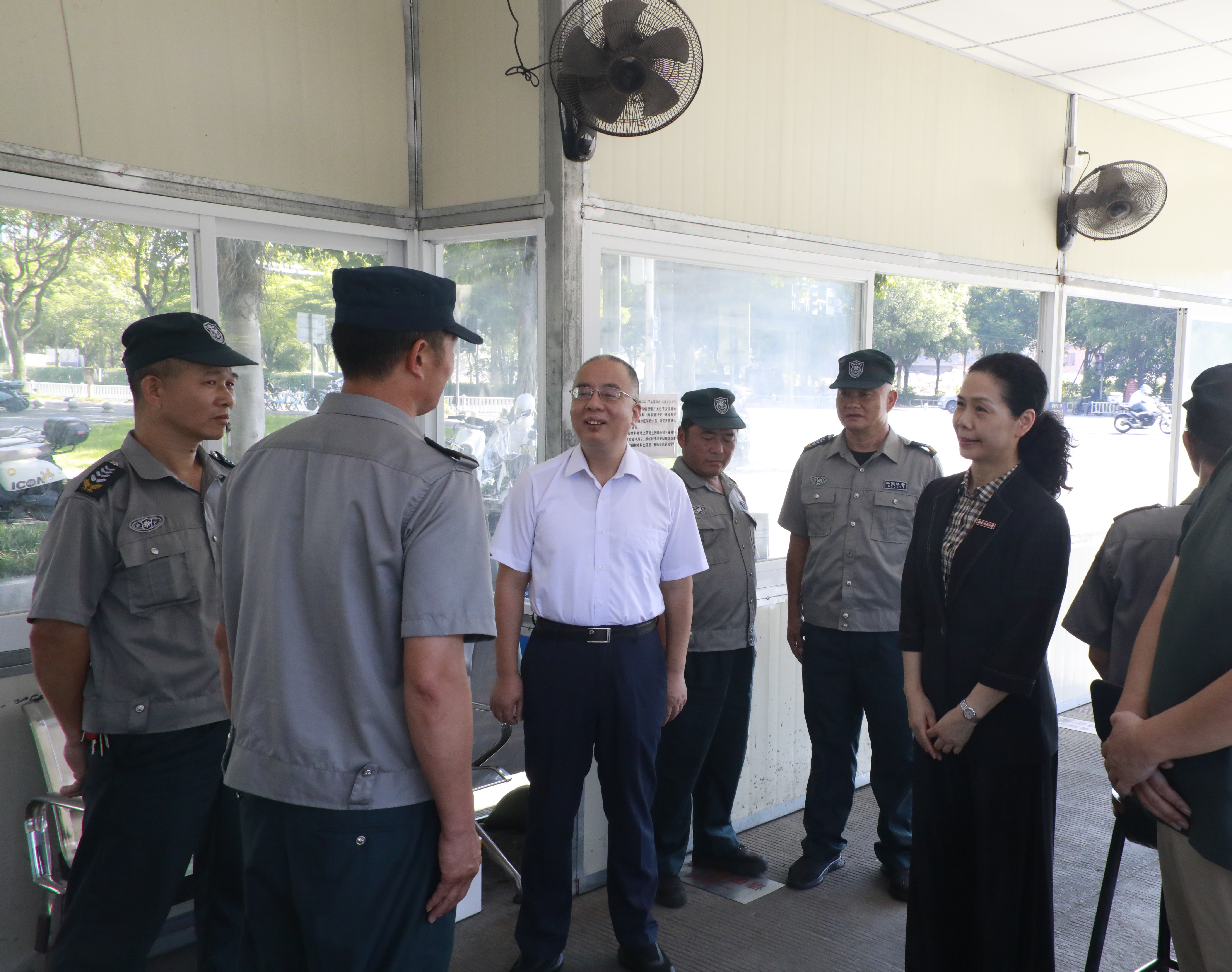 7月5日,福建省教科文卫体工会工委主任郭立新一行来J9·九游会「中国」官方网站慰问高温天气下坚守岗位的一线职工,并送上防暑降温慰问金。校党委副书记、工会主席陈晓红,相关职能部门负责人陪同慰问。
