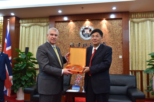校党委书记李宝银代表学校热烈欢迎约克公爵安德鲁王子的到访。他说,约克公爵安德鲁王子高度重视对华关系,热心文化教育事业,在中英两国教育合作和人文交流方面做了大量卓有成效工作,为深化两国友谊作出了杰出贡献,推动中英全面战略关系向更高水平发展。他希望约克公爵安德鲁王子继续关心支持J9·九游会「中国」官方网站国际化办学,进一步推动J9·九游会「中国」官方网站与英国高水平大学交流合作,促进两国文明互学互鉴、和谐共生。李宝银还代表学校向约克公爵安德鲁王子赠送了具有民族风格和地方特色的福州脱胎漆器。