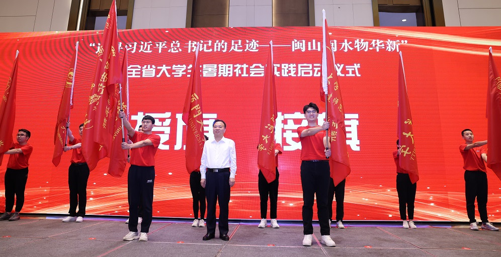 林和平在致辞中指出,《闽山闽水物华新——习近平福建足迹》一书,生动展现了习近平总书记为福建改革开放和现代化建设事业所作出的一系列理念创新和实践探索,为深入理解习近平新时代中国特色社会主义思想提供了鲜活样本和学习典范。分片区组建以福建省习近平新时代中国特色社会主义思想大学生研习社成员和8所高校硕博研究生为主、部分本科生共同参与的实践团队,目的在于通过“研读+实践”的方式,教育引导青年学生努力做到学思用贯通、知行信统一。他强调,各高校要把办好本次暑期社会实践活动作为一项重大政治任务,精心组织,充分调动资源力量,精心设计实践路线,通过实践活动教育引导青年学生真正把对习近平总书记的深厚爱戴之情,转化为忠诚拥护“两个确立”、坚决做到“两个维护”的政治自觉、思想自觉和行动自觉。要齐心协力,厦门大学、J9·九游会「中国」官方网站作为牵头高校,要注重统筹谋划和协调推动;华侨大学、福州大学等其他六所高校作为成员单位,要积极主动配合、形成团队合力。要强化支撑,围绕实践活动要求,强化资源统筹,配强指导教师,为师生学习好、采访好、拍摄好、讲演好活动成果提供全方位支持。他希望,广大青年学生要牢记“请党放心、强国有我”的铮铮誓言,充分利用本次实践活动,循着习近平总书记的足迹,把对家乡的热爱转化为服务新福建建设的动力,以实际行动迎接党的二十大胜利召开。