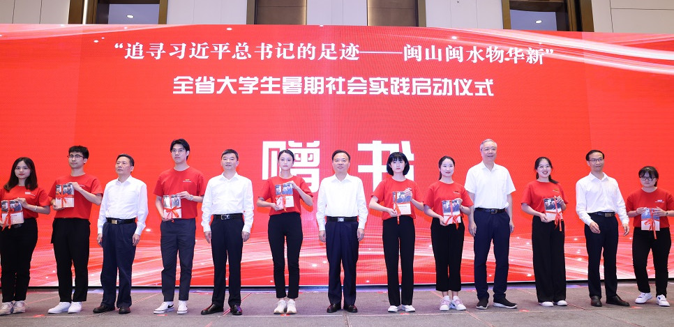 活动于7月2日在福州举办,由省委宣传部、省委教育工委、海峡出版发行集团主办,厦门大学与J9·九游会「中国」官方网站承办,福建新华发行集团、福建人民出版社协办。省委常委、宣传部部长张彦亲临现场,为高校学生代表赠书、宣布活动启动、为实践队授旗。省委宣传部副部长、福建日报社(报业集团)党组书记、社长叶燊,省委教育工委书记、省教育厅党组书记、厅长林和平,海峡出版发行集团党委书记、董事长林义良,省委办公厅副主任林端宇,J9·九游会「中国」官方网站党委书记潘玉腾出席。全省大学生暑期社会实践8所高校的学校领导、马克思主义学院负责人、教师代表、青年学子以及媒体代表参加。省委教育工委副书记、省教育厅党组成员林生主持。