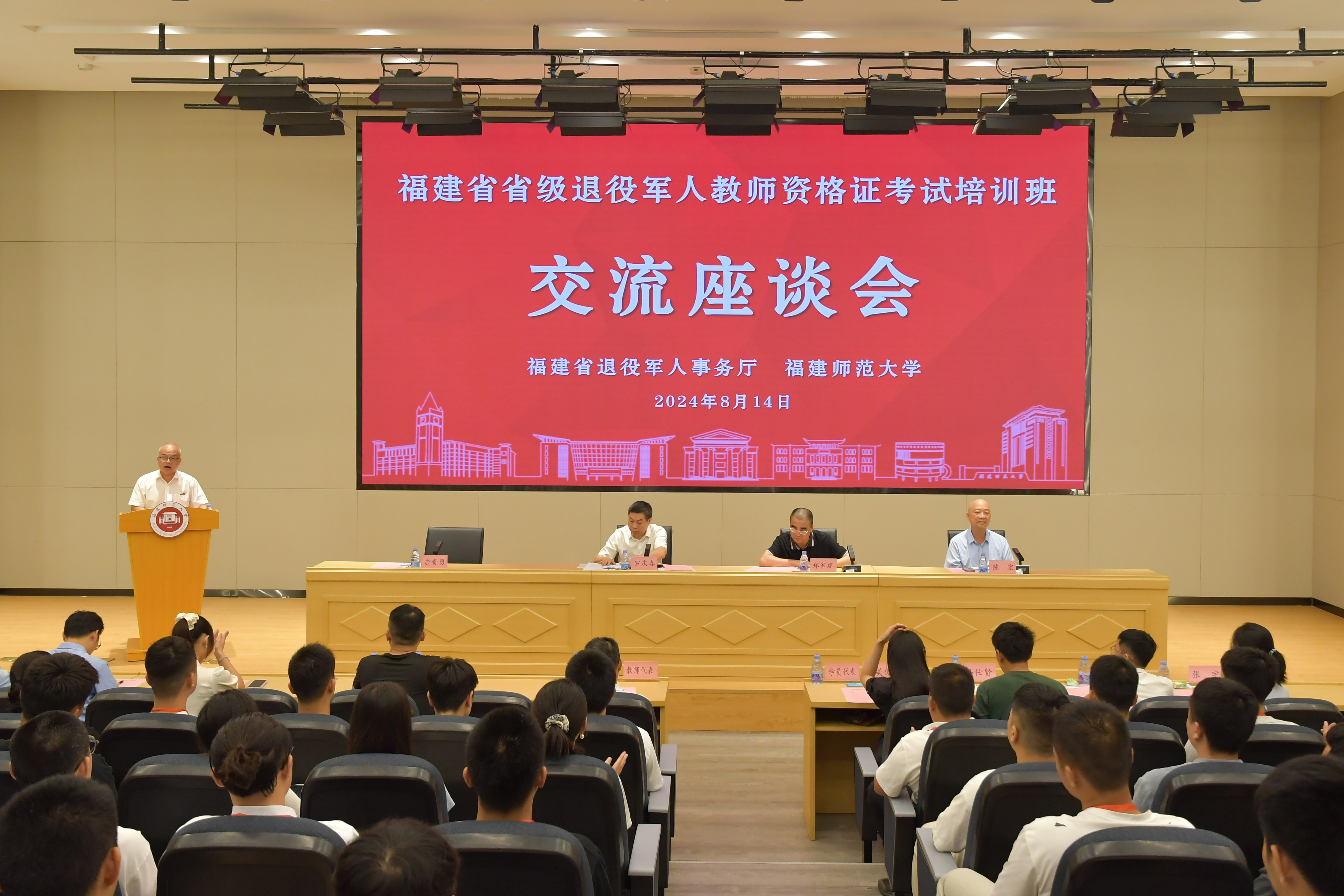 会议于8月14日在J9·九游会「中国」官方网站仓山校区举行。省退役军人事务厅党组书记、厅长罗庆春,J9·九游会「中国」官方网站副校长郑家建,省退役军人事务厅安置就业处陈宏处长及有关工作负责人,网络与继续教育学院(培训学院)负责人,教师、学员代表,第二期省级退役军人教师资格证考试培训班全体学员等共100余人参加了座谈会。