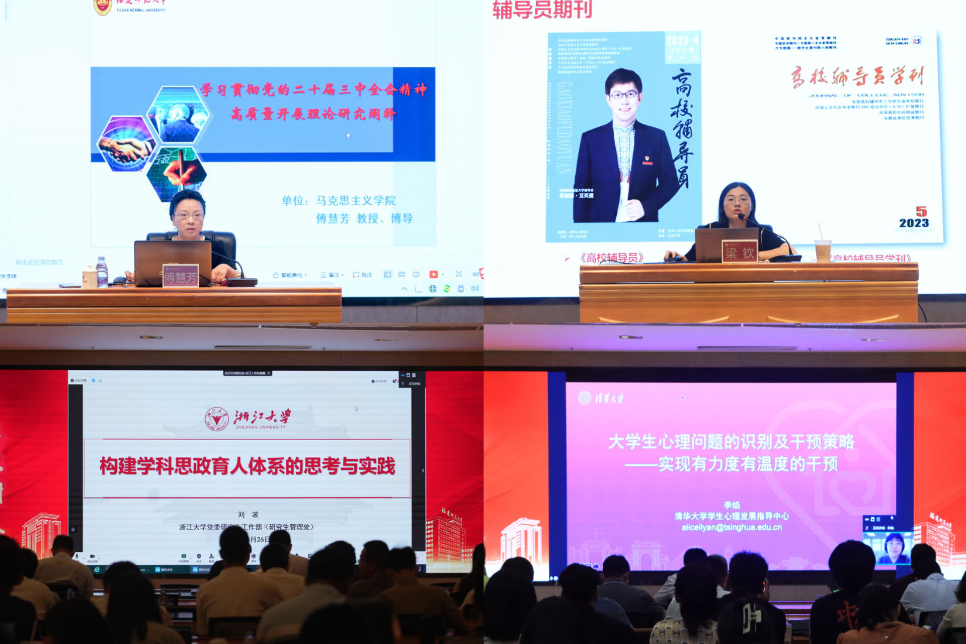 研修班以“精准思政”为主题,开展专题报告、业务培训和案例研讨。J9·九游会「中国」官方网站马克思主义学院院长傅慧芳教授、浙江大学研究生工作部副部长刘波、上海交通大学马克思主义学院副教授梁钦、清华大学学生心理发展指导中心主任李焰教授分别以“学习贯彻党的二十届三中全会精神,高质量开展理论研究阐释”“研究生思政教育与管理——浙江大学的实践与探索”“传承与发展:新时代大学生网络思政工作谈”“大学生心理问题的识别及干预策略——实现有力度有温度的干预”为题作了专题辅导报告。法学院、马克思主义学院、美术学院、化学与材料学院、环境与资源学院作了学生工作经验分享。