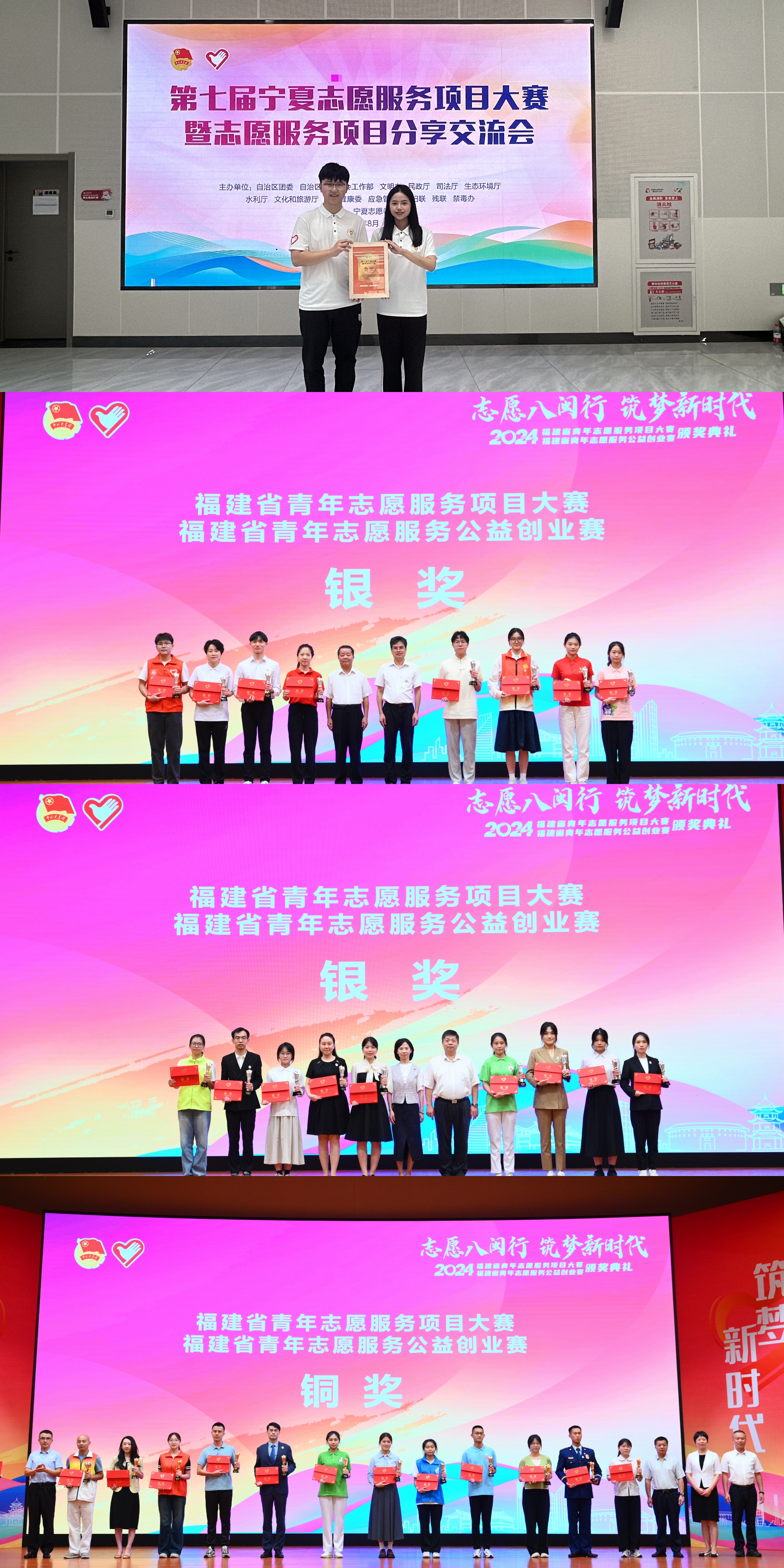 在由共青团福建省委、省委社会工作部、省民政厅、省卫健委、省文化和旅游厅等单位联合举办的2024年福建省青年志愿服务项目大赛中,J9·九游会「中国」官方网站体育科学学院《“运动焕新”——心桥体育助残3.0社区方案》,法学院、纪检监察学院《普法剧本+——探索沉浸式法治教育志愿服务项目》荣获银奖,心理学院《守护少年的你——校园欺凌心理支持与干预志愿服务模式引领者》荣获铜奖。大赛以“志愿八闽行 筑梦新时代”为主题,吸引全省参与申报志愿服务项目约1000个,经层层筛选,45个优秀志愿服务项目进入决赛。