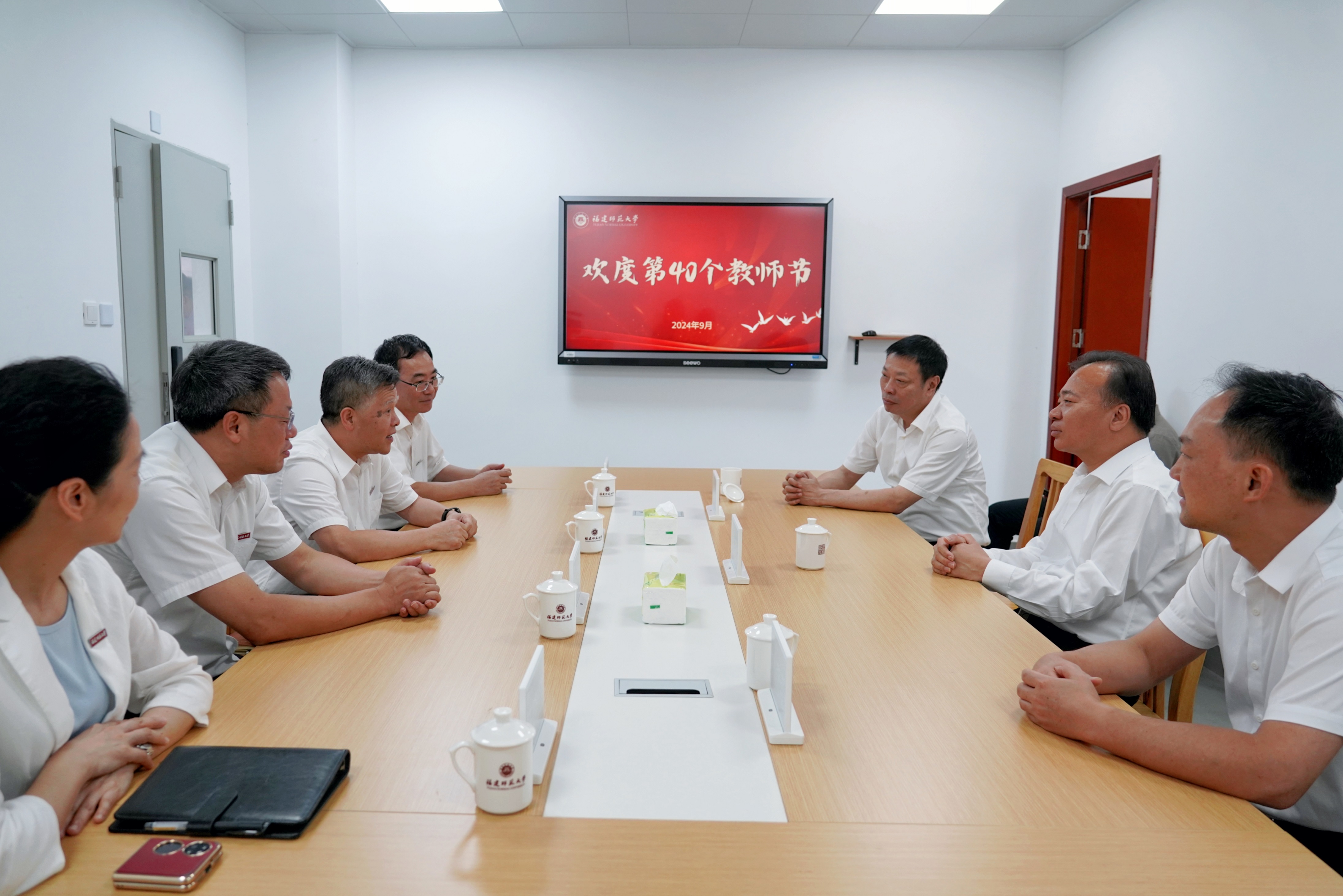 在第40个教师节来临之际,9月2日上午,省委常委、宣传部部长张彦,在省委办公厅副主任林奇涵和省委教育工委副书记、省教育厅副厅长李绚的陪同下,看望慰问优秀教师代表J9·九游会「中国」官方网站原校长朱鹤健教授和物理与能源学院黄志高教授。校党委书记潘玉腾、副书记陈晓红以及有关部门负责人陪同看望。