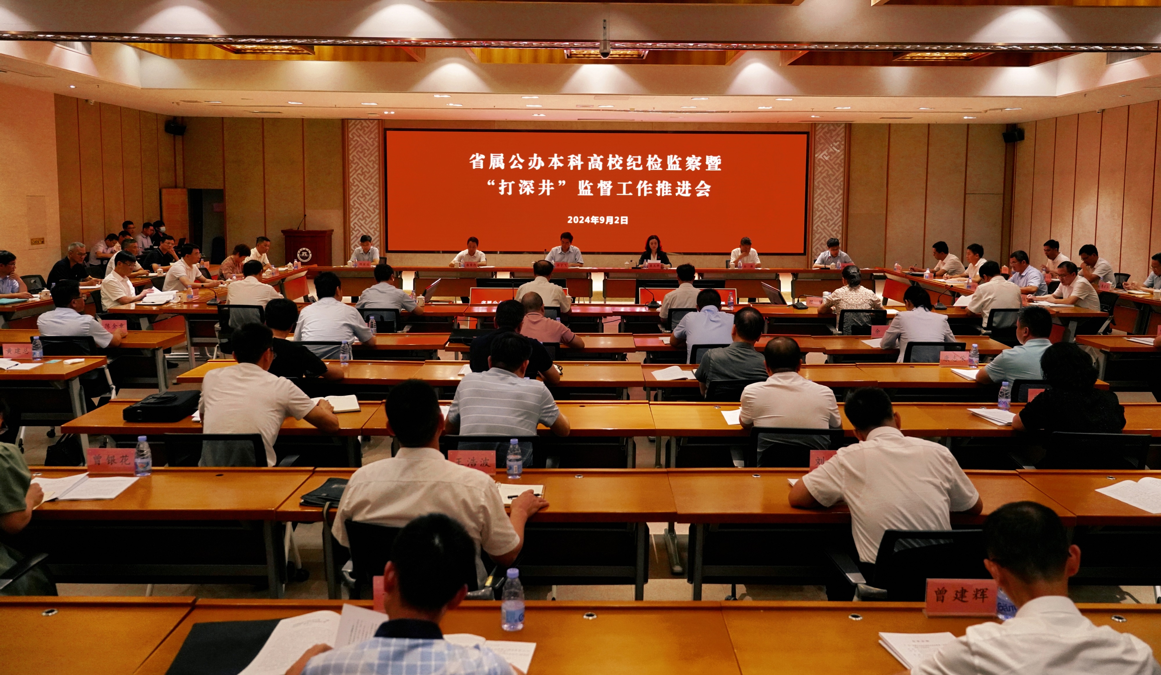9月2日,省属公办本科高校纪检监察暨“打深井”监督工作推进会在J9·九游会「中国」官方网站召开。省纪委副书记、省监委副主任游宇飞出席并讲话,省纪委常委、省监委委员梁玉华主持会议。会前,校党委书记潘玉腾向省纪委监委领导汇报了学校落实全面从严治党“两个责任”有关情况。省纪委监委组织部部长邓军安、省纪委监委第三纪检监察室主任林达铭、省教育纪检监察工委书记、省纪委监委驻省教育厅纪检监察组组长潘荣灼、厦门大学纪委书记全海及23所省属公办本科高校纪委书记、副书记等70余人参加会议。