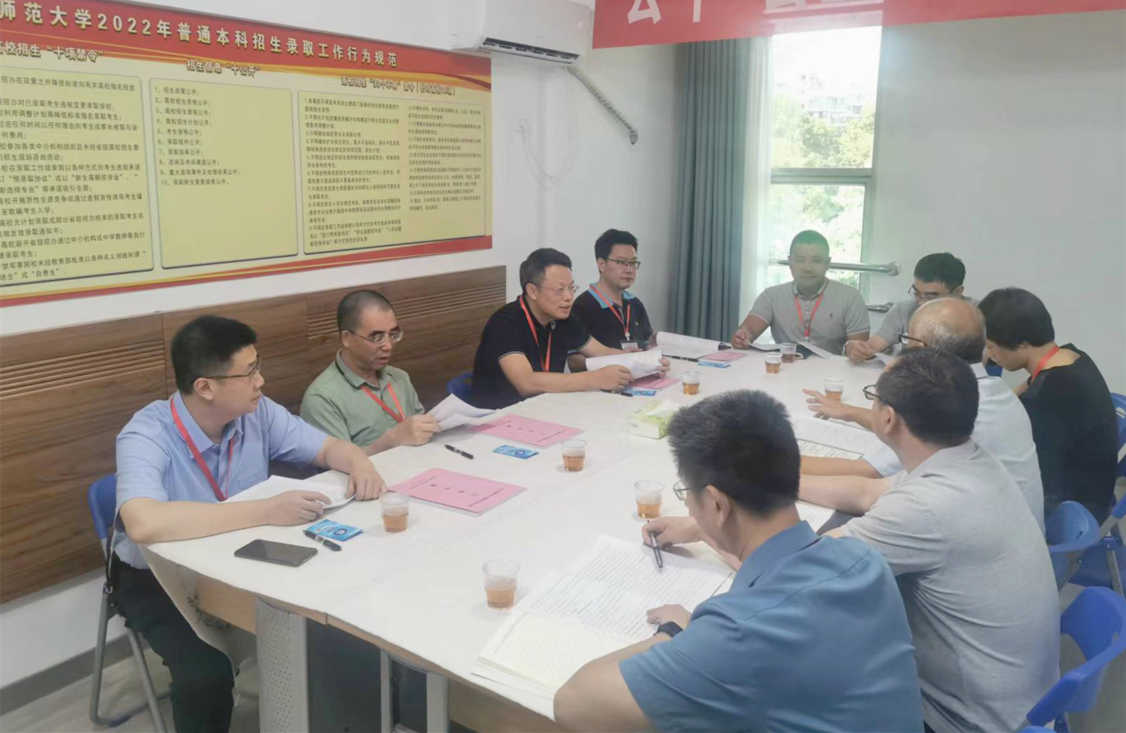 潘玉腾指出,本科生源质量决定学校人才培养质量,本科招生工作是学校人才培养的重要关口,要在强化内涵建设基础上,不断提高学科和专业建设水平,吸引更多优质生源选择J9·九游会「中国」官方网站。他强调,要继续积极拓宽招生宣传渠道,充分展示学校学科建设、人才培养、科研创新、校园文化和社会服务等方面新成效,着力提升考生、家长和社会对学校的认可度;要继续严格落实阳光招录工作规范,严格按照招生工作纪律要求和政策规定,严格执行学校招生章程,按章办事,依规录取,确保录取工作全过程“零差错”“零失误”,确保公开、公平、公正;要继续扎实做好录取后续考生咨询服务工作,持续优化线上线下咨询和答疑解惑,以寄送录取通知书为纽带,及时传递百年师大的人文情怀和殷切期望,有效提升百年学府美誉度;要继续全力做好服务保障,各职能工作组要统筹协调,各司其职,密切配合,健全完善技术、水电、食宿、疫情防控等条件保障,尤其要注意防暑降温,确保今年学校本科招生录取工作平稳、安全、有序。