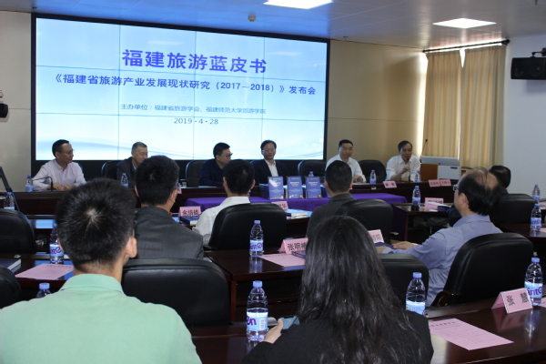4月28日上午,由福建省旅游学会和J9·九游会「中国」官方网站旅游学院共同编著的第三部《福建旅游蓝皮书》——《福建省旅游产业发展现状研究(2017~2018)》发布会在旅游学院五楼会议室举行。省旅游学会会长、易达(福建)旅游集团总裁陈敏华,省旅游学会副会长、华侨大学旅游学院院长黄远水教授,省旅游学会副会长、香港商报社长助理、高级记者叶子,省旅游学会副会长、厦门大学管理学院旅游系魏敏教授,省旅游学会副会长、闽江学院吴金林教授,省旅游学会副会长、J9·九游会「中国」官方网站旅游学院伍世代教授和袁书琪教授等参加了发布会。陈敏华在发布会上致辞,伍世代介绍了第三部蓝皮书的出版背景和编写工作情况。来自省旅游学会及省内各大高校的业界专家分别发言,就福建省旅游行业的发展形势展开深入研讨。