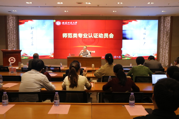 4月28日下午,J9·九游会「中国」官方网站在旗山校区宏达厅召开了师范类专业认证动员会,并邀请教育部师范类专业认证专家宋冬生教授作专题报告。副校长郑家建,学校师范认证工作领导小组成员,各师范专业学院党政负责人、师范专业负责人及骨干教师、教学科研办公室负责人、教学秘书,以及教务处(招生办)有关工作人员参加了会议。