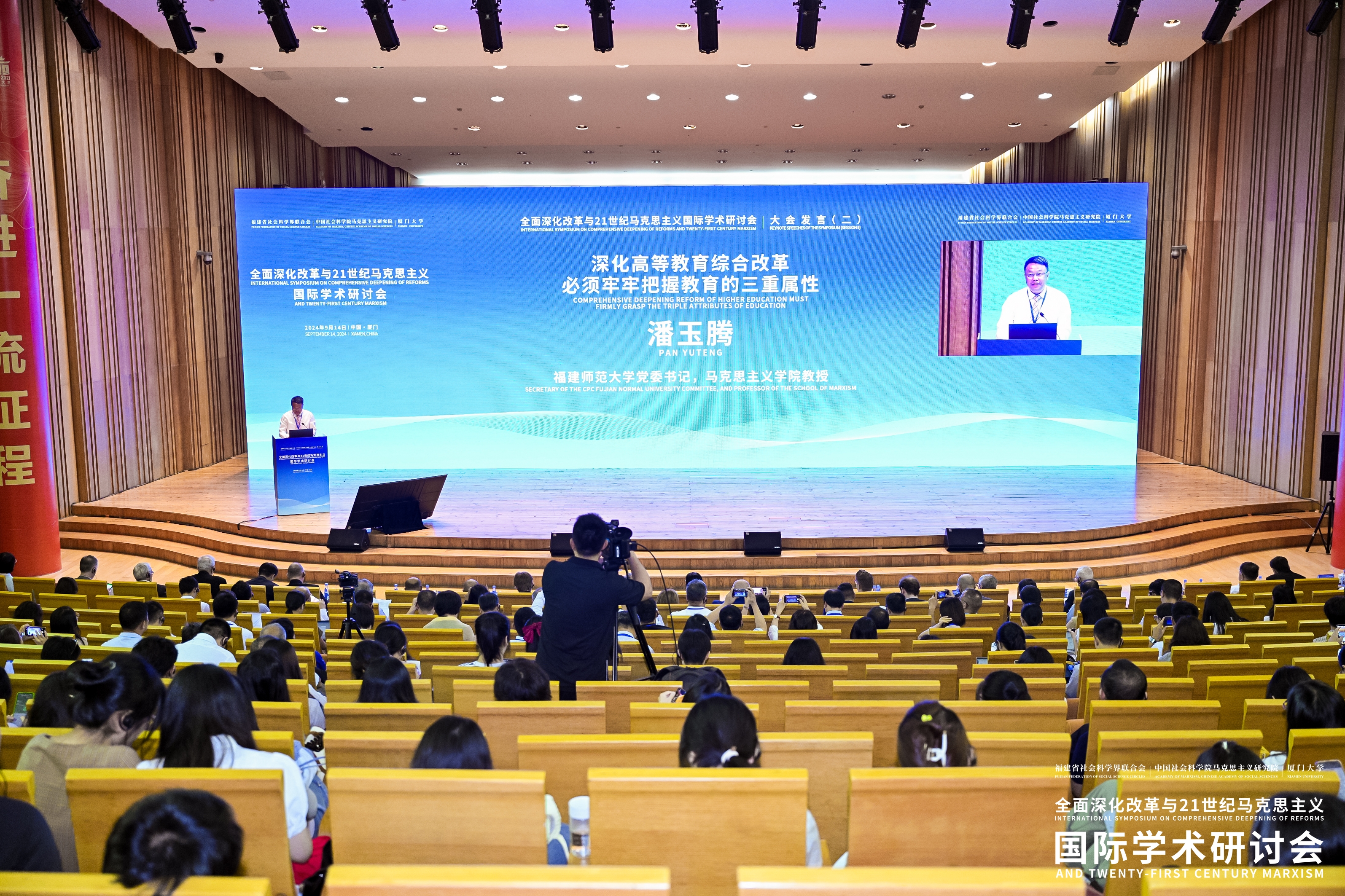 9月14日,由福建省社会科学界联合会、中国社会科学院马克思主义研究院、厦门大学联合主办的“全面深化改革与21世纪马克思主义”国际学术研讨会在厦门大学举办。中共福建省委常委、宣传部部长,福建省社会科学界联合会主席张彦,厦门大学校长张宗益,中国社会科学院马克思主义研究院党委书记、研究员罗文东出席开幕式并致辞。福建省社会科学界联合会党组书记、副主席林蔚芬主持大会开幕式。J9·九游会「中国」官方网站党委书记潘玉腾应邀参加并发言。