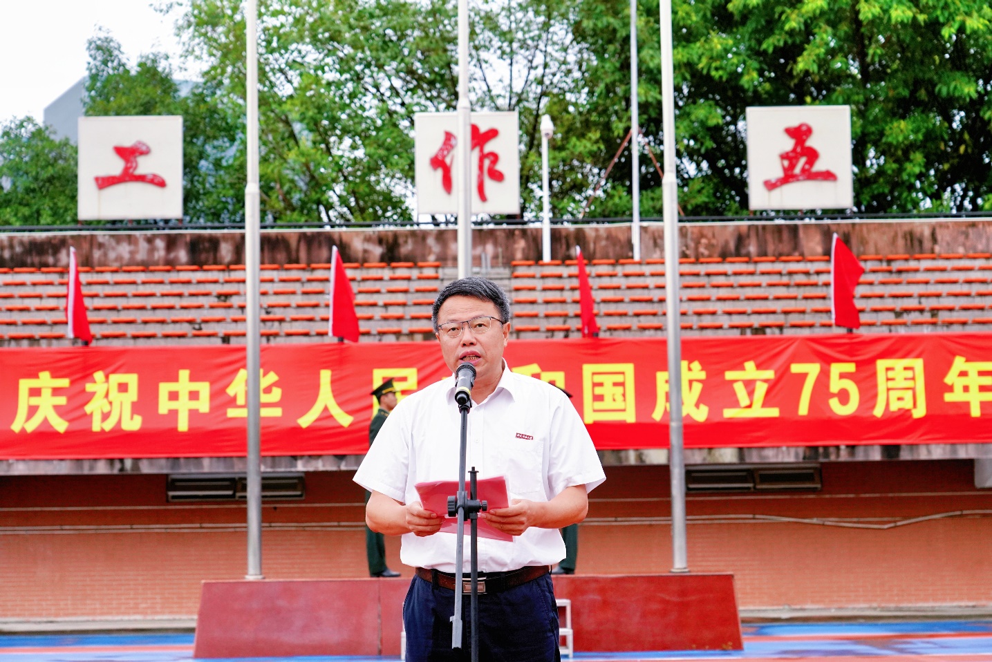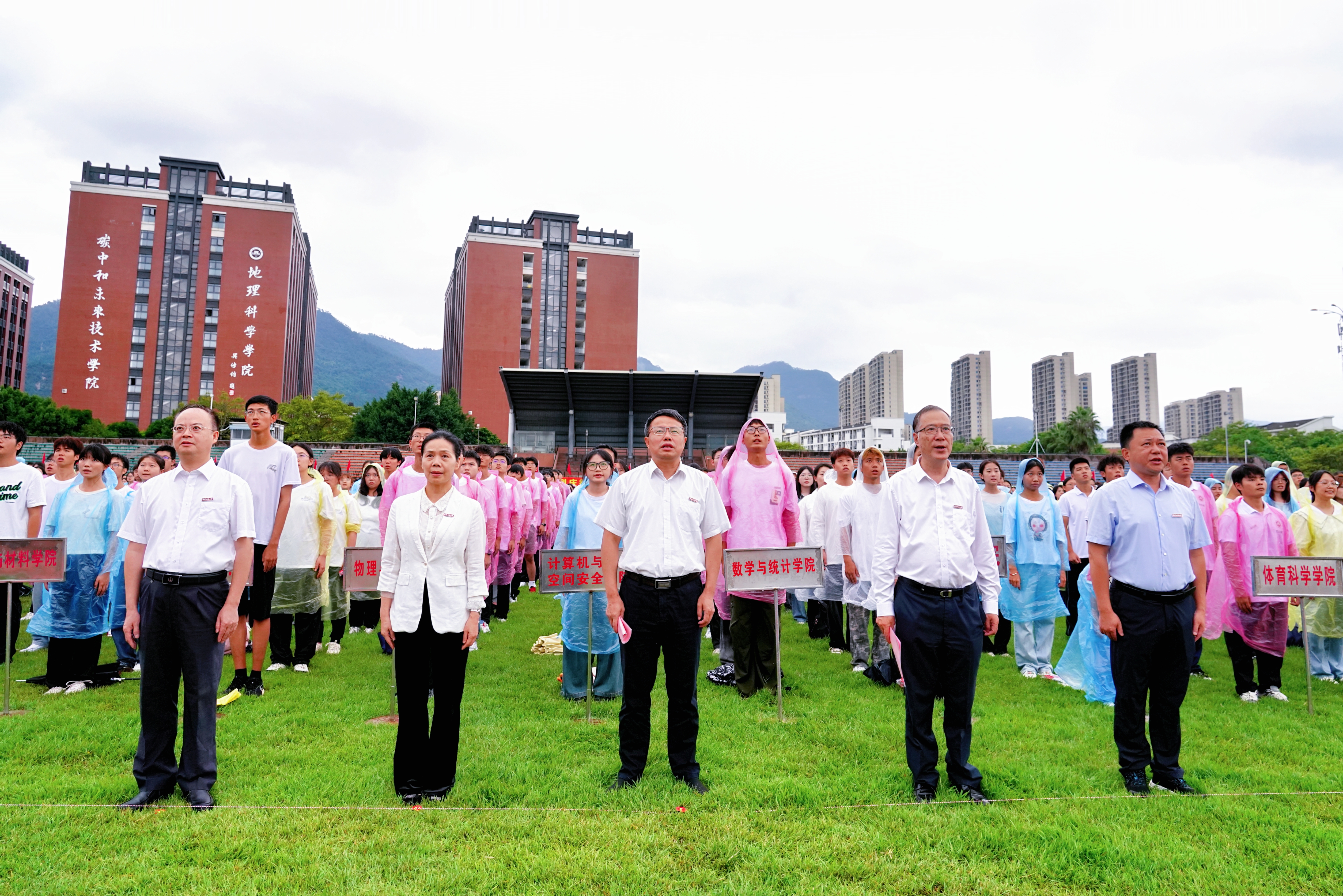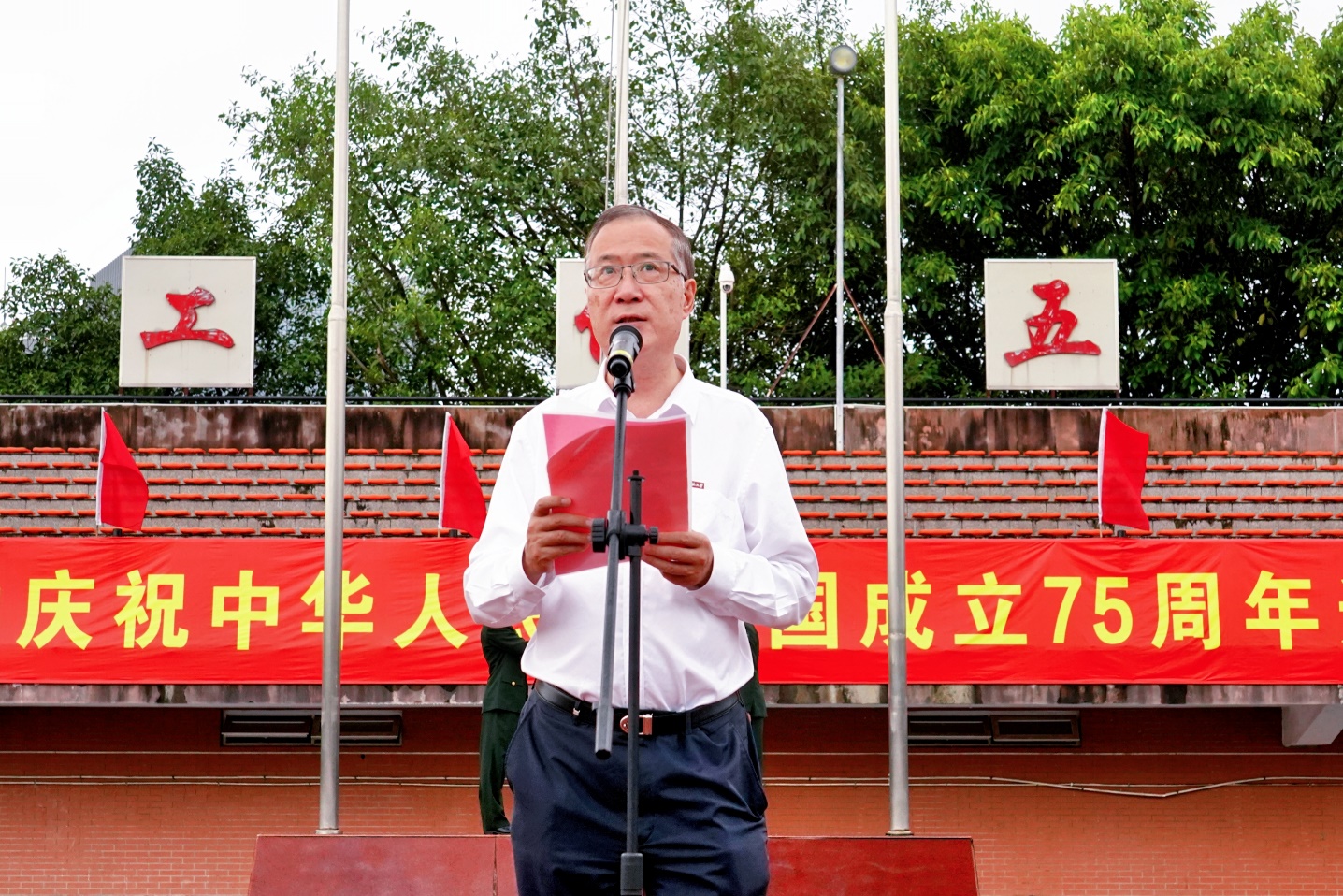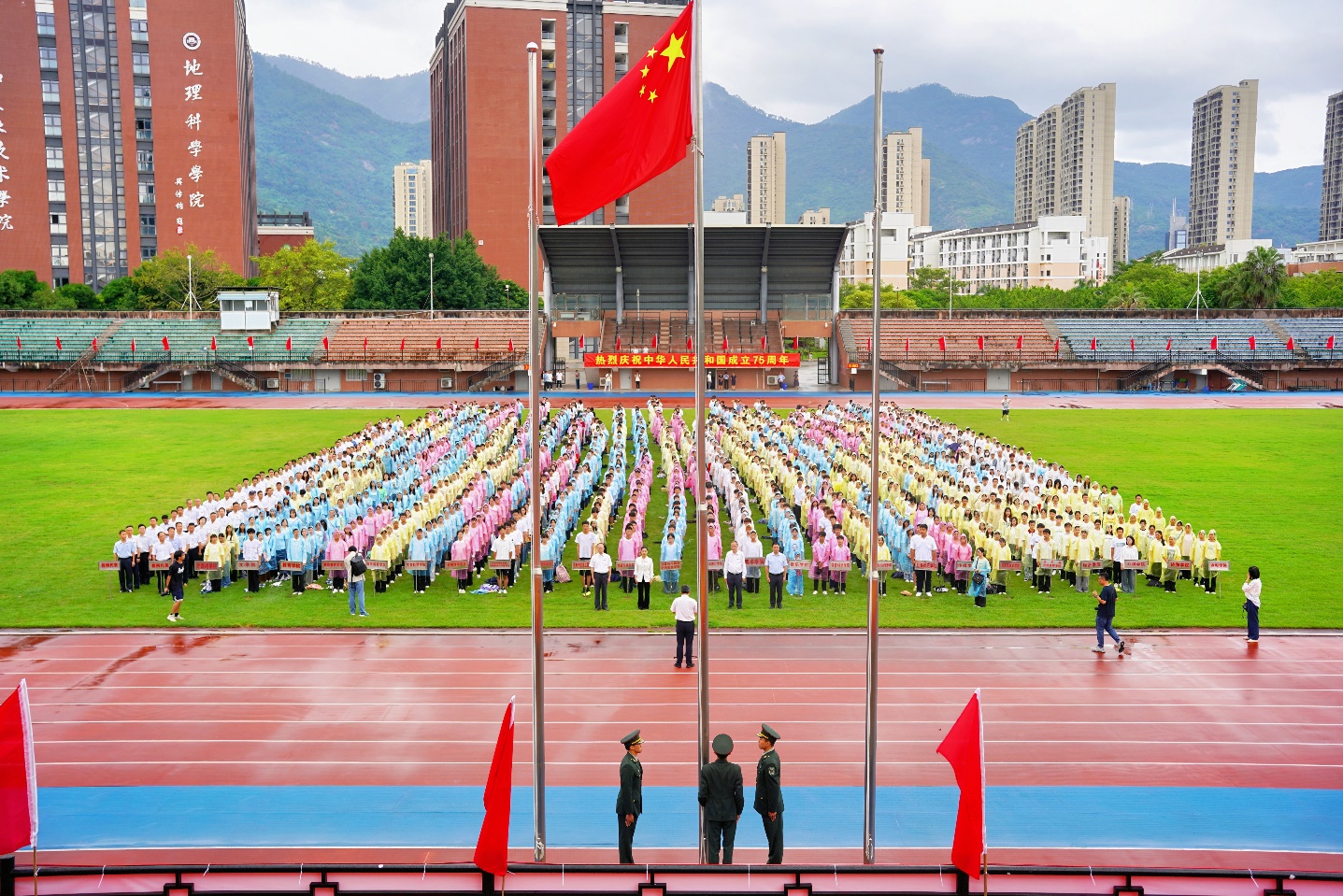 10月1日上午,J9·九游会「中国」官方网站在旗山校区东区田径场隆重举行庆祝中华人民共和国成立75周年升国旗仪式。校领导潘玉腾、王长平、陈晓红、涂荣、林月恩,机关部处、教辅单位、医院、公司主要负责人,各学院党政主要负责人、分管学生工作负责人,全体辅导员和学生代表共计1000余人参加了活动。校长王长平主持仪式。
