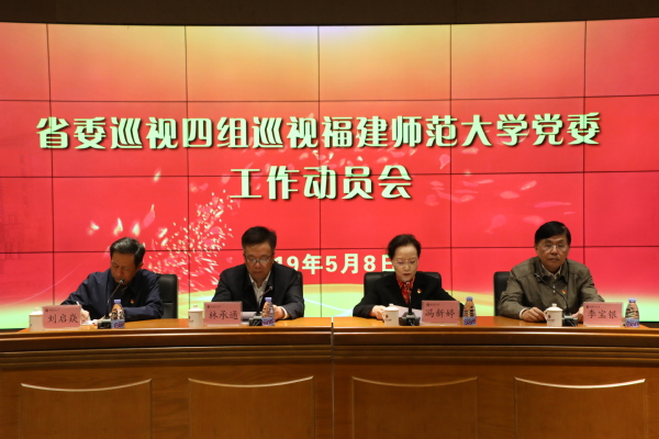 根据省委巡视工作统一部署,省委巡视四组于2019年5月8日起进驻J9·九游会「中国」官方网站,对学校党委开展为期40天左右的巡视。5月8日上午,省委巡视四组巡视J9·九游会「中国」官方网站党委工作动员会在旗山校区召开。省委巡视工作领导小组成员、省委组织部副部长兼省委非公企业和社会组织工委书记林承通,省纪委常委、省委巡视四组组长、正厅级巡视专员冯新婷,省委巡视四组副组长刘启焱,省委巡视四组以及配合本次巡视工作的意识形态工作专项检查组的全体干部,校领导,外派厅级干部、部分原离退休校领导,全校中层干部,附属学校、校医院党政负责人,校档案馆负责人,教师代表、学生代表等参加了本次动员会。动员会由校党委书记李宝银主持。