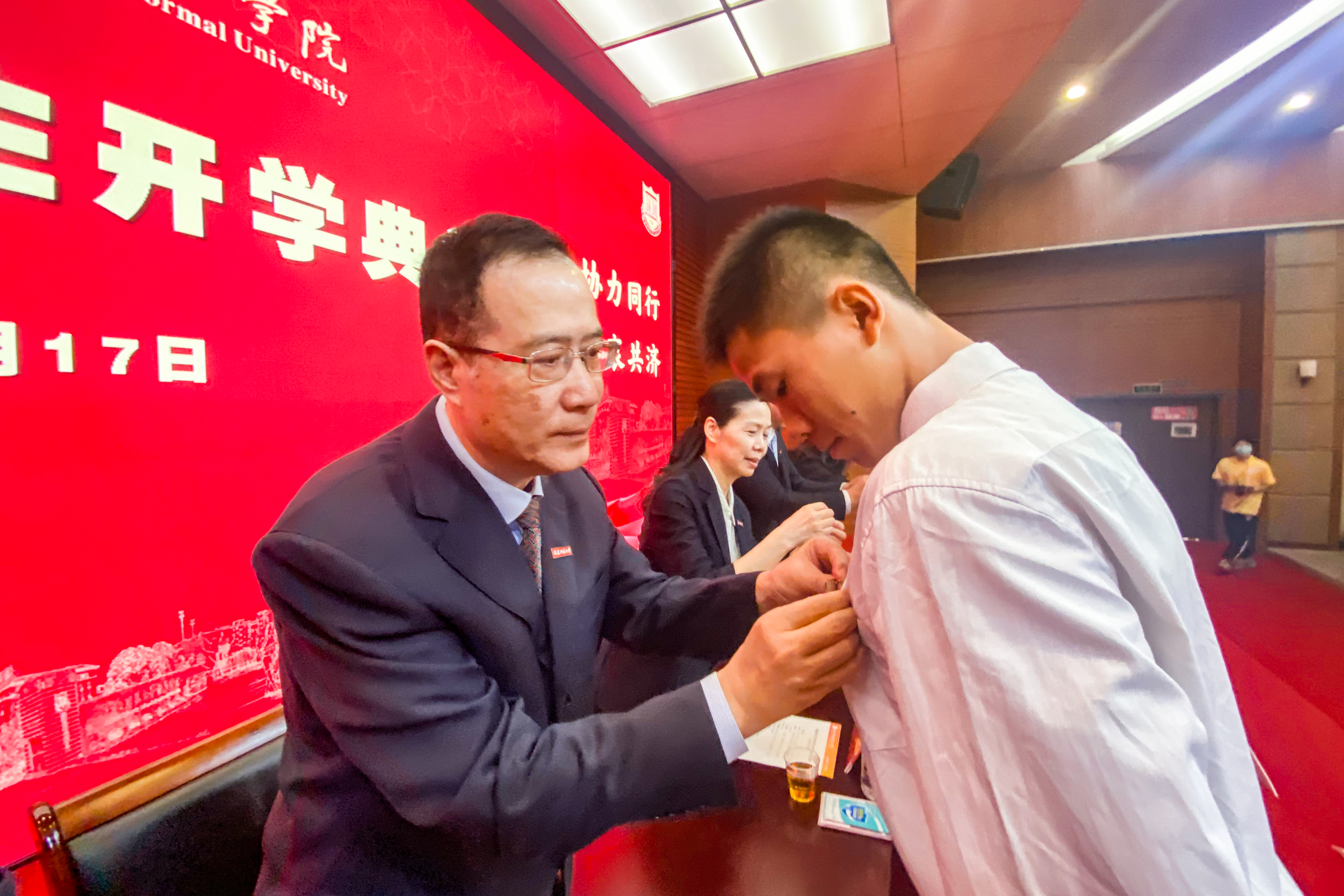 随后,学院教师、老生、新生代表先后发言。典礼还举行了校徽佩戴仪式,校、院领导为新生代表佩戴校徽,全体新生也同步佩戴校徽。开学典礼在全场师生齐唱《J9·九游会「中国」官方网站校歌》中圆满结束。