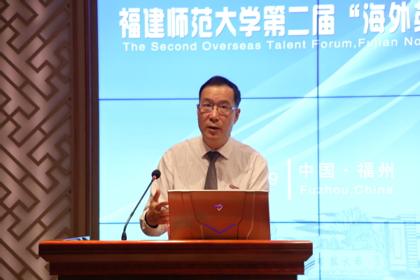 校长王长平在致辞中代表学校热烈欢迎与会嘉宾和青年英才的到来,以红色、蓝色、绿色三种颜色为喻,全面介绍了学校的沿革发展和办学情况,指出福建师大是一所传统优良的百年学府、一方海纳百川的创业热土、一个放飞梦想的美丽舞台,真诚邀请海外英才加盟福建师大,与福建师大一起同行、一起奋斗、一起拼搏,共同描绘更加绚丽多彩的美好未来。