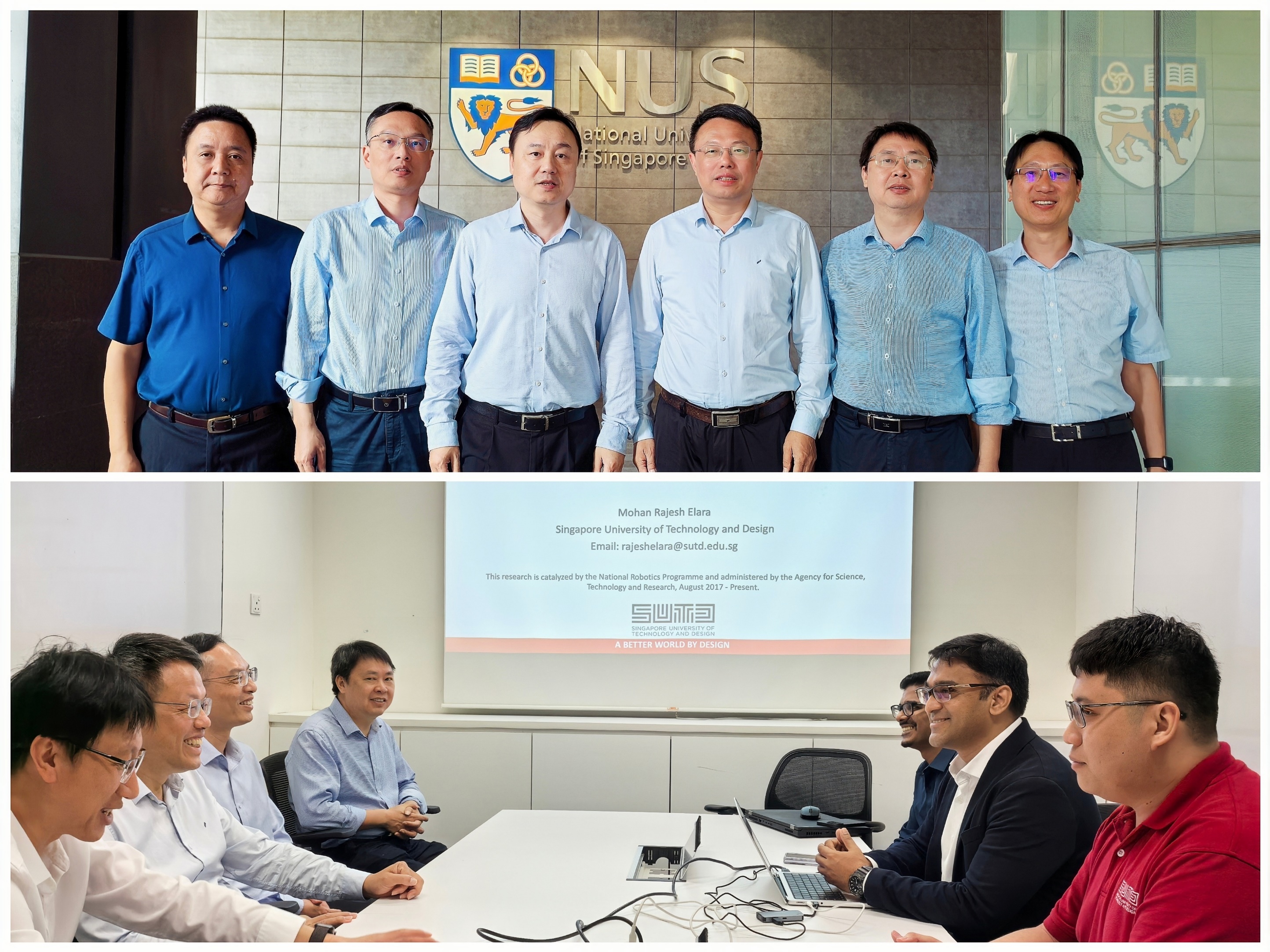 在新加坡,代表团先后访问了新加坡国立大学、南洋理工大学和科技设计大学。在新加坡国立大学,全球事务部负责人会见了代表团一行。潘玉腾重点介绍了J9·九游会「中国」官方网站学科发展、科技成果转化以及对外交流等方面取得的成效,希望依托海上丝绸之路国际产学研用合作会议,进一步加强两校专家学者在博士生联合培养等方面的交流合作。潘玉腾一行还看望了J9·九游会「中国」官方网站在新加坡国立大学访学交流的师生。在南洋理工大学,代表团会见了机械与航空航天工程学院和计算机科学与工程学院人工智能研究院管理团队及相关教师。潘玉腾表示,希望与南洋理工大学在网络空间安全、新能源材料、人工智能等领域,在人才培养、科研合作、教师交流等方面探索校际科研协作,实现优势资源互补共享。在新加坡科技设计大学,代表团会见了教务长讲座教授莫汉·拉杰什·埃拉拉,双方就如何在人工智能、机器人等学科领域开展线上线下合作与人才培养等进行了深入探讨。期间,代表团还拜会了新加坡国家科学院院士刘小钢教授,希望与其研究团队在人才联合培养、学术科研交流等方面,共同拓展双方合作的深度和广度。