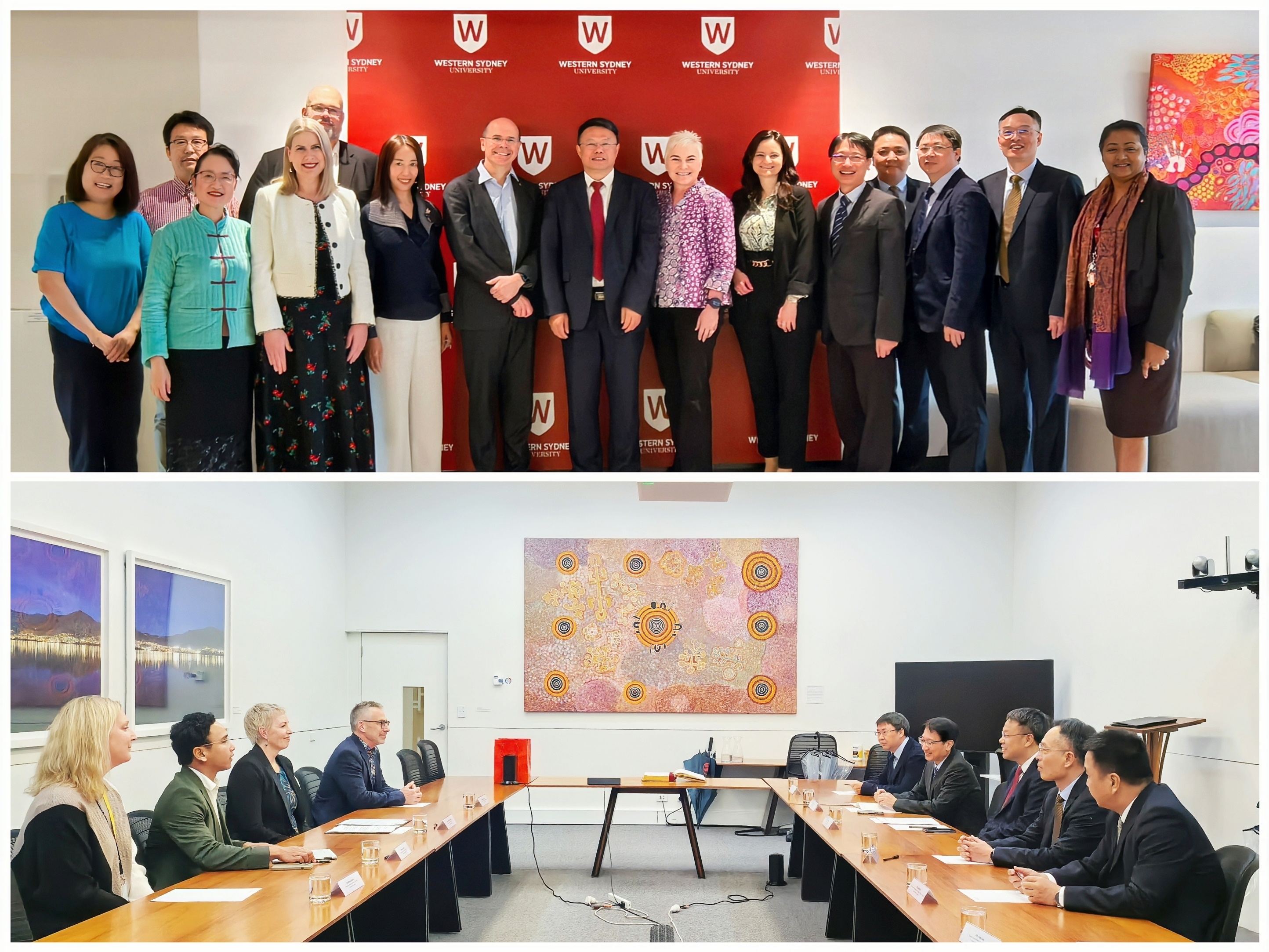 在澳大利亚,西悉尼大学校长乔治∙威廉、副校长尼科琳∙默多克对代表团的到访表示欢迎,积极评价双方合作取得的成果,表示将持续推动两校交流合作。潘玉腾表示,西悉尼大学是J9·九游会「中国」官方网站重要合作伙伴之一,希望双方加强对接、深化合作,拓宽本硕联合培养项目的学科领域和办学层次,助推国际化人才培养和中澳教育文化交流创新发展。会谈期间,双方就开展师生科研实践学术交流进行讨论并达成初步共识。在塔斯马尼亚大学,代表团与国际学院院长梅拉妮·布莱恩特教授、交换生与海外研修部主任、合作伙伴与合作项目办公室主任、国际事务部主管等进行了会谈。两校合作历史悠久,其所在地友好省州关系已长达43年。双方一致同意赓续友谊、推进合作,围绕人文地理、艺术音乐、海洋及生物等领域开展各层次人才培养和跨学科创新,共同推动各项合作取得更多实质性成果。