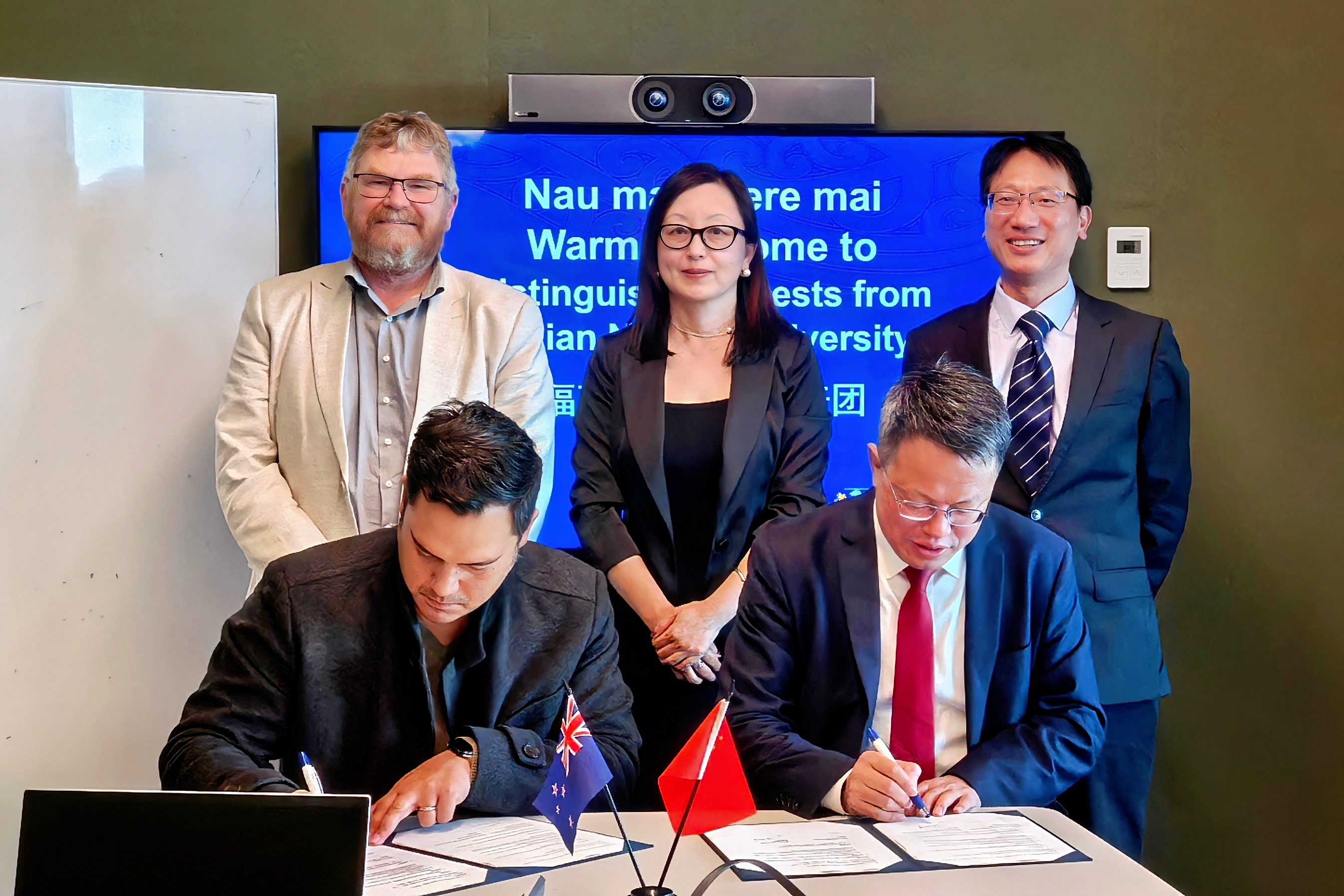 在新西兰,代表团首站访问梅西大学,会见了常务副校长特瑞∙麦格纳格-戴利及学校管理团队。双方回顾了十余年来两校在学生联合培养、师资科研交流等方面取得的合作成果,就持续推进学生交换、研究生联合培养、教学科研人员访学交流等合作达成共识,并签署了传播专业联合培养项目合作意向书。