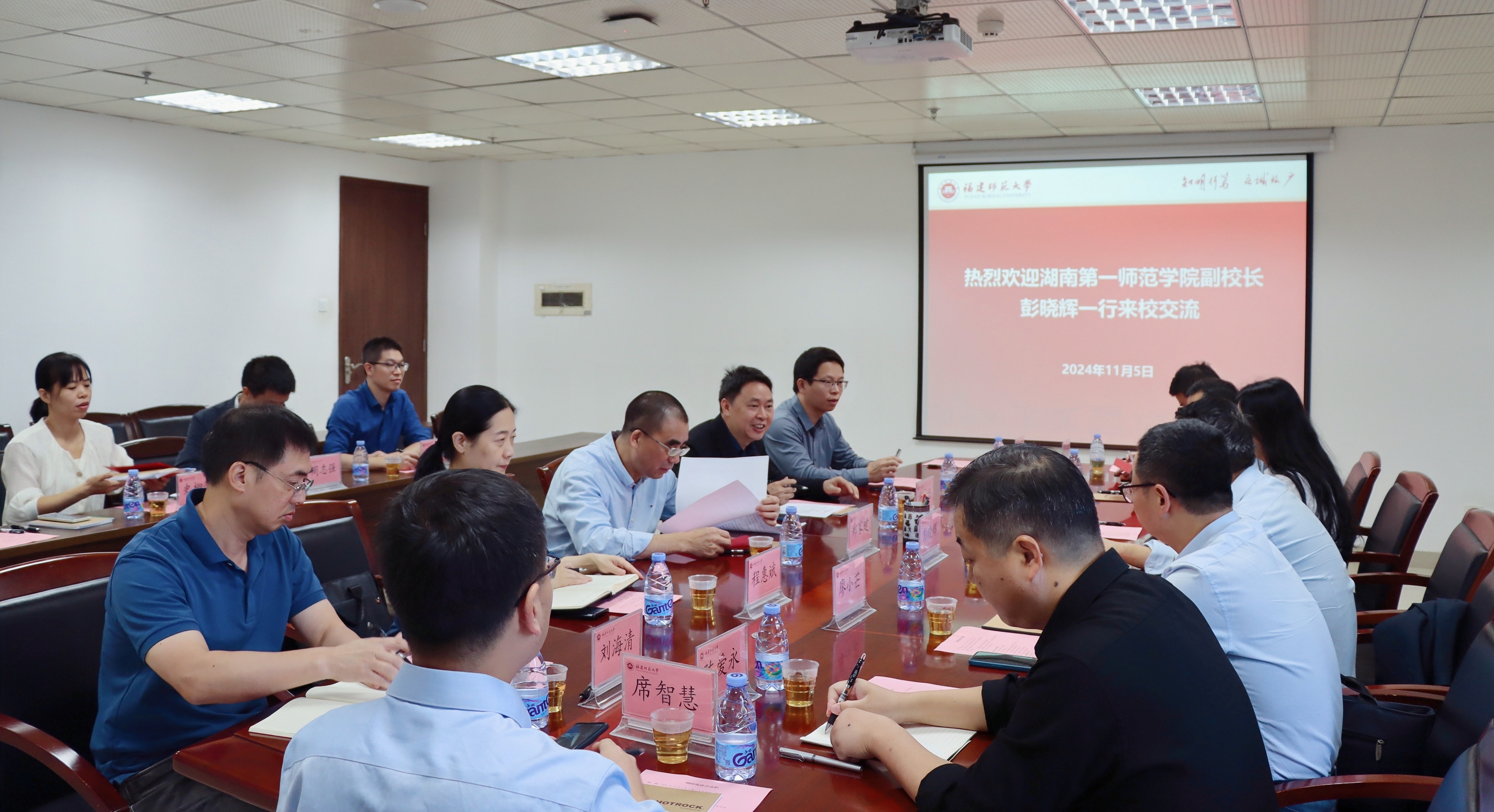 郑家建代表学校热烈欢迎彭晓辉一行的到来。他表示,两校作为教育部师范教育协同提质合作校,近年来始终保持密切联系,希望两校进一步加强合作,共同推动本科教育教学高质量发展。彭晓辉介绍了湖南第一师范学院人才培养有关情况,希望通过此次交流,进一步深化交流合作,共同探索本科教育教学创新发展。随后,双方围绕师范类专业建设、本科教育教学审核评估和课程建设等方面进行深入交流和探讨。