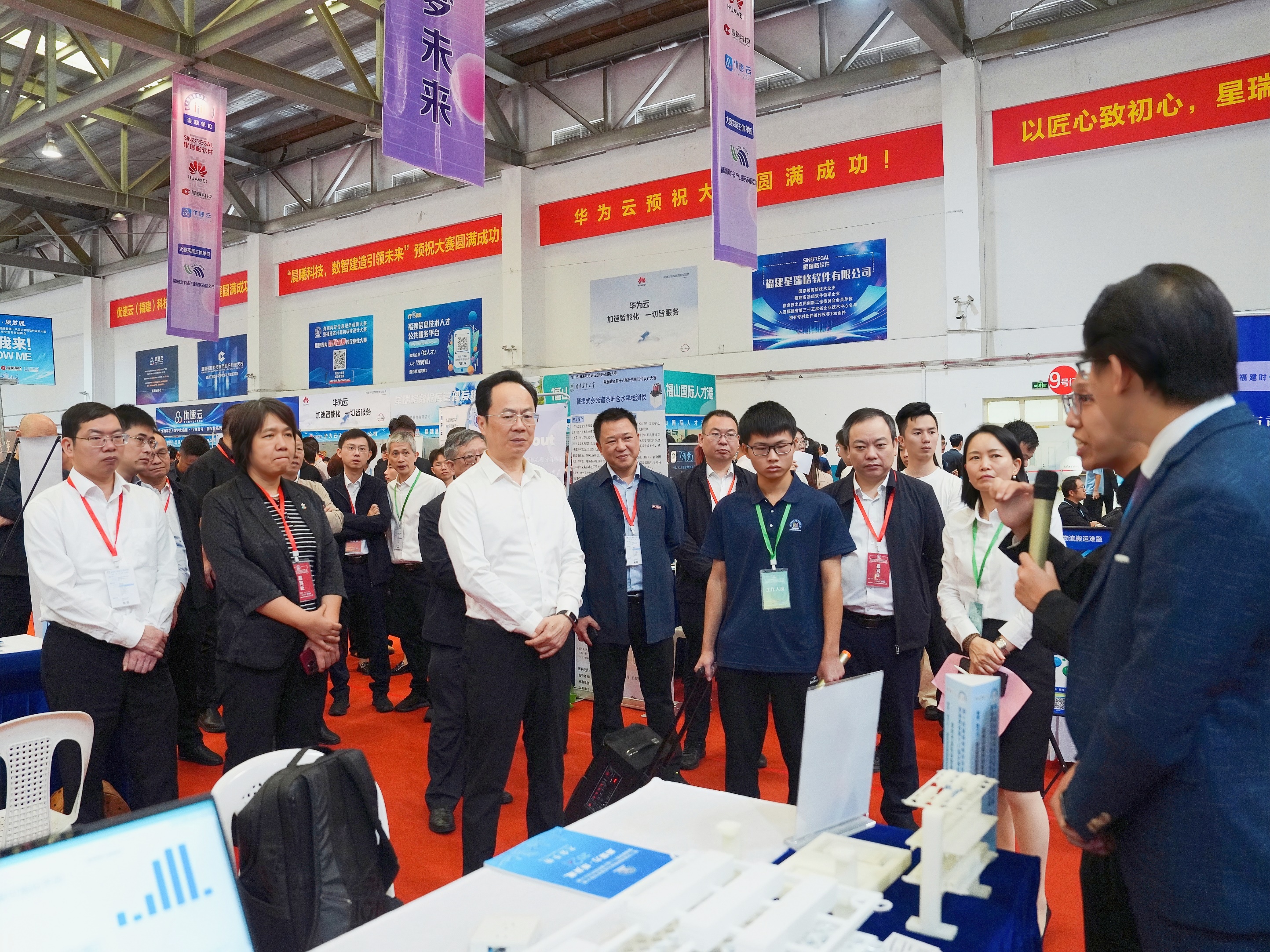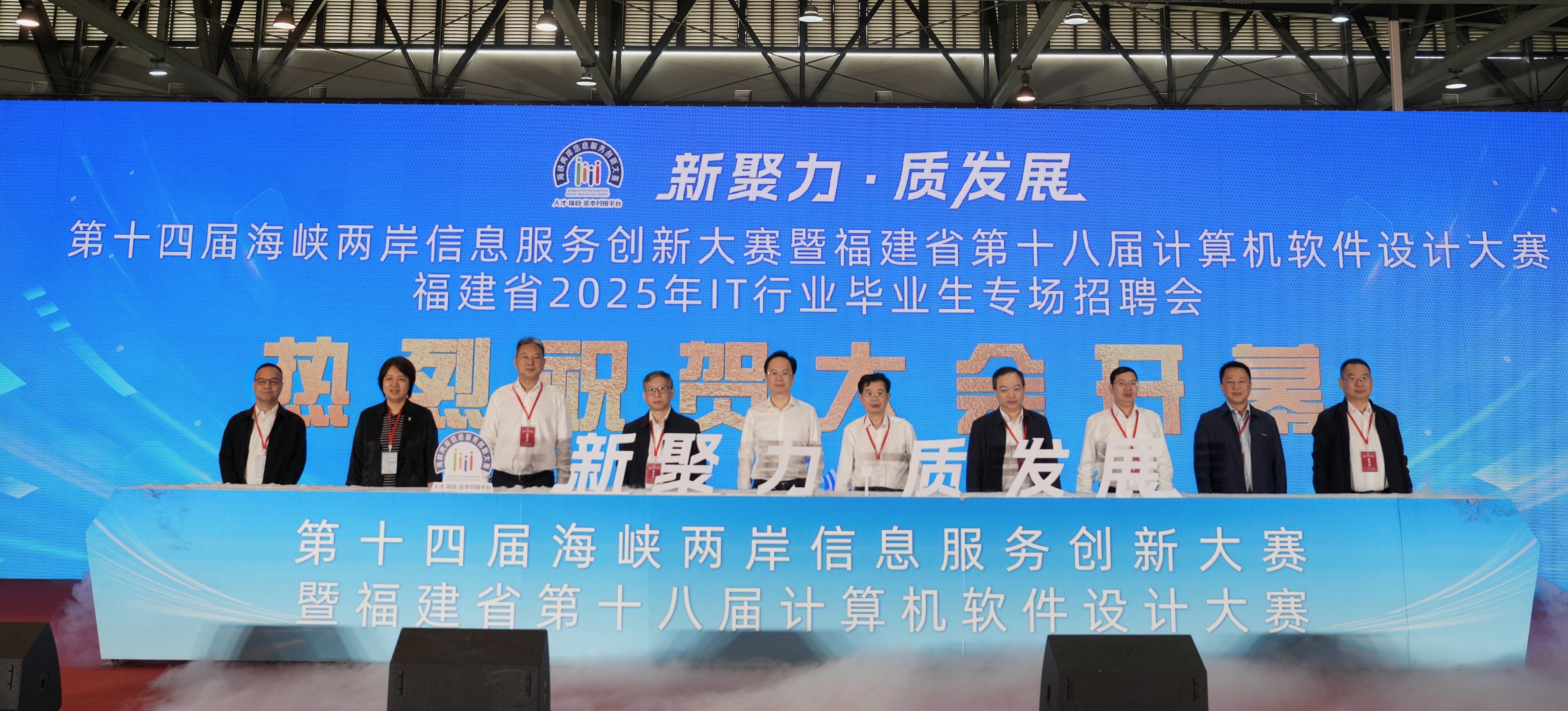 11月10日,由省工信厅、省人社厅、省教育厅、中国海峡人才市场和J9·九游会「中国」官方网站联合主办的福建省2025年IT行业毕业生专场招聘会在旗山校区体训馆举行。招聘会采用以赛助聘的模式,与第十四届海峡两岸信息服务创新大赛暨福建省第十八届计算机软件设计大赛决赛同步举办。省工信厅副厅长郭学军,省教育厅二级巡视员黄荣光,省科技厅副厅长黄舒,省商务厅二级巡视员崔华,省总工会一级巡视员卢明琪,团省委副书记张阿峰,省委统战部部务会议成员、省中华职业教育社党组书记黄玲,J9·九游会「中国」官方网站党委副书记涂荣,以及省大中专毕业生就业工作中心主任罗增桂、福州软件园管委会主任黄瑞忠,J9·九游会「中国」官方网站学生工作部、有关学院分管学生工作负责人及毕业班辅导员、毕业生参加了招聘会。