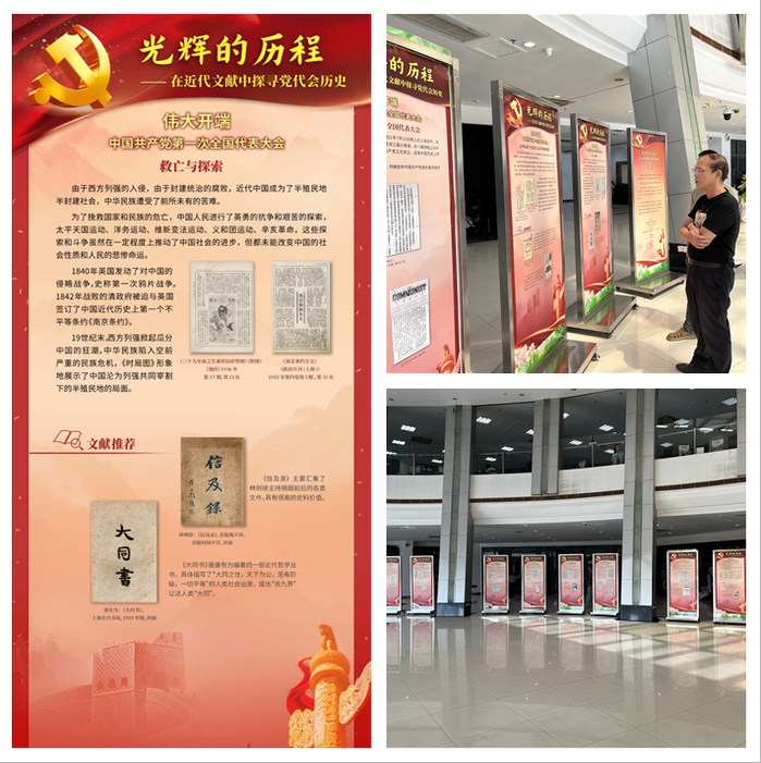近日,“光辉的历程——在近代文献中探寻党代会历史”主题展在旗山校区图书馆二楼大厅展出。该展览在近代文献的爬梳中,回顾中共一大至中共七大的光辉历程,展现党在新民主主义革命时期的奋斗成就与经验,用历史映照现实、远观未来。展览由图书馆党委主办,图书馆第二党支部、第一党支部策划,旨在深入学习贯彻习近平总书记关于用好红色资源、赓续红色血脉的系列重要论述,激励师生在新的征程上更加坚定、更加自觉地牢记初心使命、开创美好未来。 (图书馆)