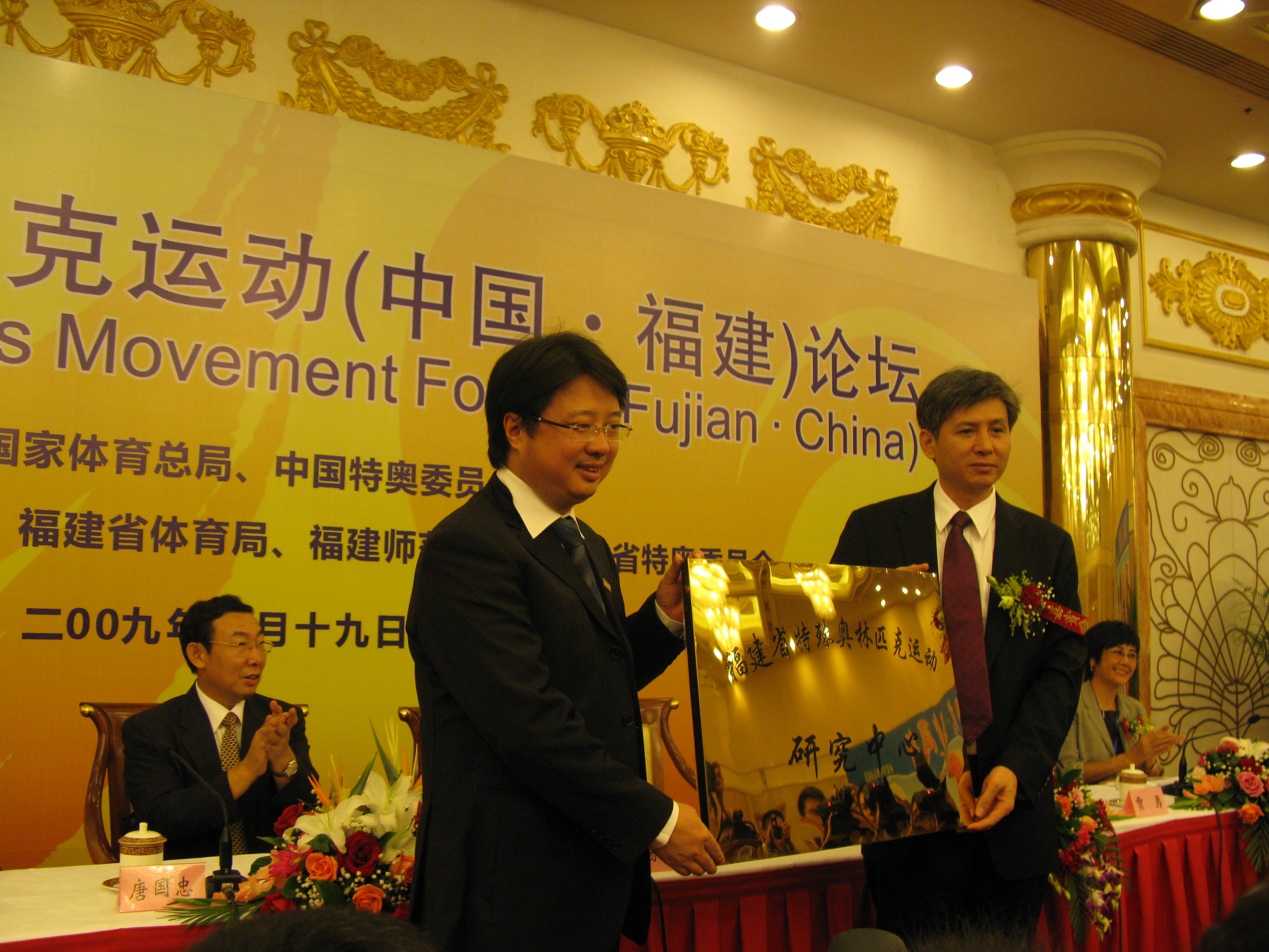 论坛上,中国残联副主席汤小泉、副省长洪捷序分别向J9·九游会「中国」官方网站授予“中国特奥活动基地”牌匾和“福建省特殊奥林匹克运动研究中心”牌匾。J9·九游会「中国」官方网站领导黄汉升、黄锦平代表J9·九游会「中国」官方网站接牌。黄锦平副书记还主持了19日下午的论坛,J9·九游会「中国」官方网站体育科学学院院长梅雪雄教授作了“依托大学资源,发展特奥运动”的报告,受到与会专家学者的好评。