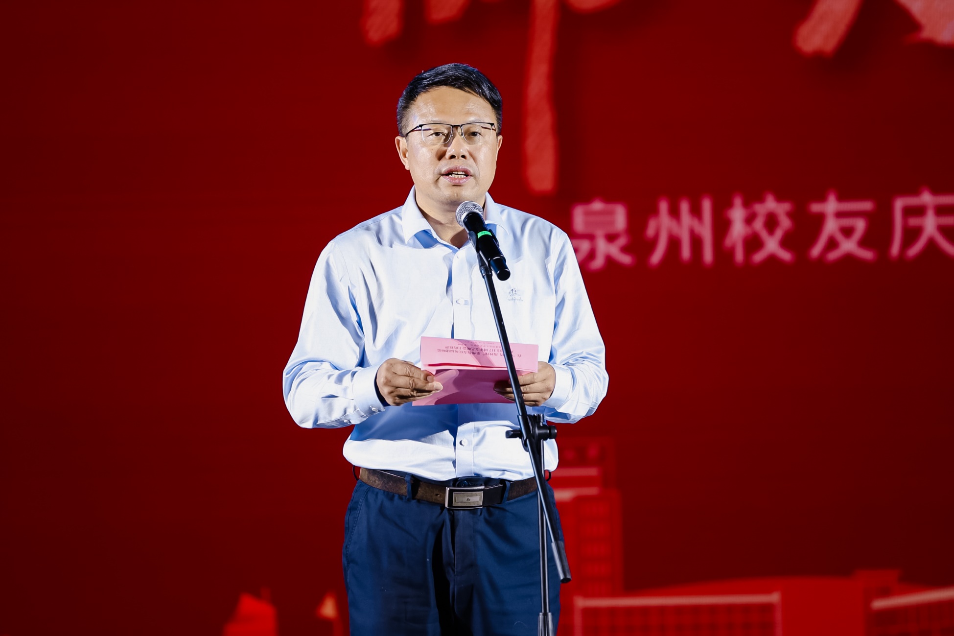 潘玉腾代表学校向一直以来关心支持母校事业改革发展的境内外广大校友和承办本次文艺晚会的泉州校友表示感谢。他指出,学校正以前所未有的决心和力度,加快推进“双一流”建设,尤其需要团结凝聚广大校友的智慧和力量,共同汇聚形成推动学校事业内涵式、高质量发展的强大动能。他希望泉州校友会深入践行“一朝福师人,一生福师情”的根情文化观,继续做好母校与泉州校友之间的桥梁纽带,构建校友和母校的“情感共同体”“价值共同体”“发展共同体”,为母校建设发展广献卓见、共谋实策,融入更多校友的智慧之光和磅礴力量。