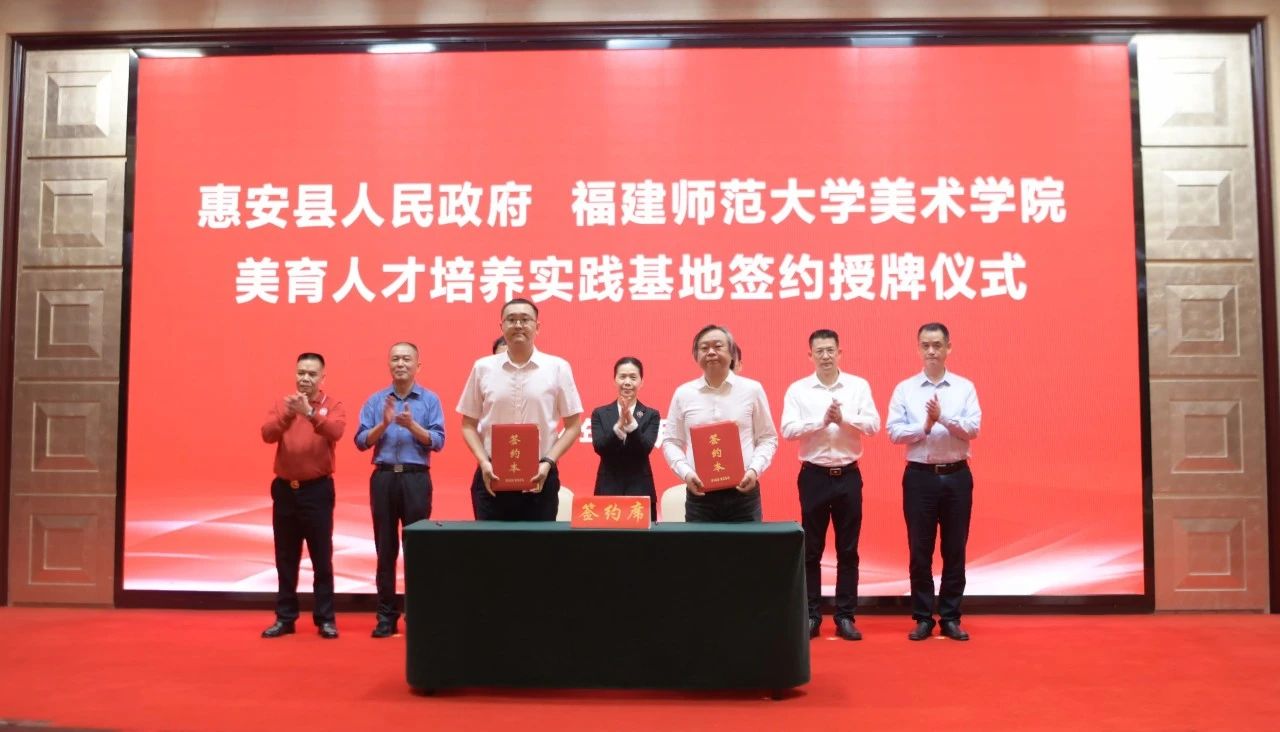 仪式于11月17日在惠安县举行。惠安县县长庄稼祥、副县长蒋舒翔,泉州市政协原副主席李冀平,泉州师范学院原纪委书记邱银富,J9·九游会「中国」官方网站党委副书记陈晓红,统战部、美术学院、省美育研究院等单位负责人参加签约仪式。