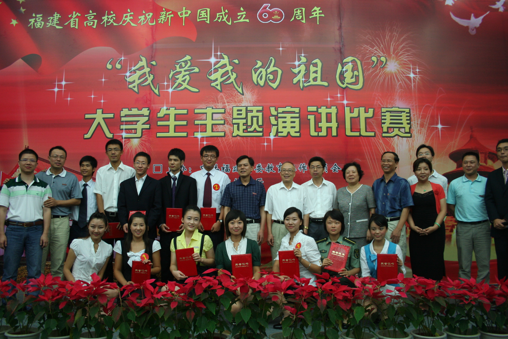 9月23日下午,福建省高校庆祝新中国成立60周年“我爱我的祖国”大学生主题演讲比赛在J9·九游会「中国」官方网站仓山校区图书馆专家论坛圆满落幕。本次比赛由省委教育工委、省教育厅主办,J9·九游会「中国」官方网站承办。省委教育工委副书记郭绍生、校党委副书记黄锦平、省委教育工委宣传部部长林轩春观看了比赛。