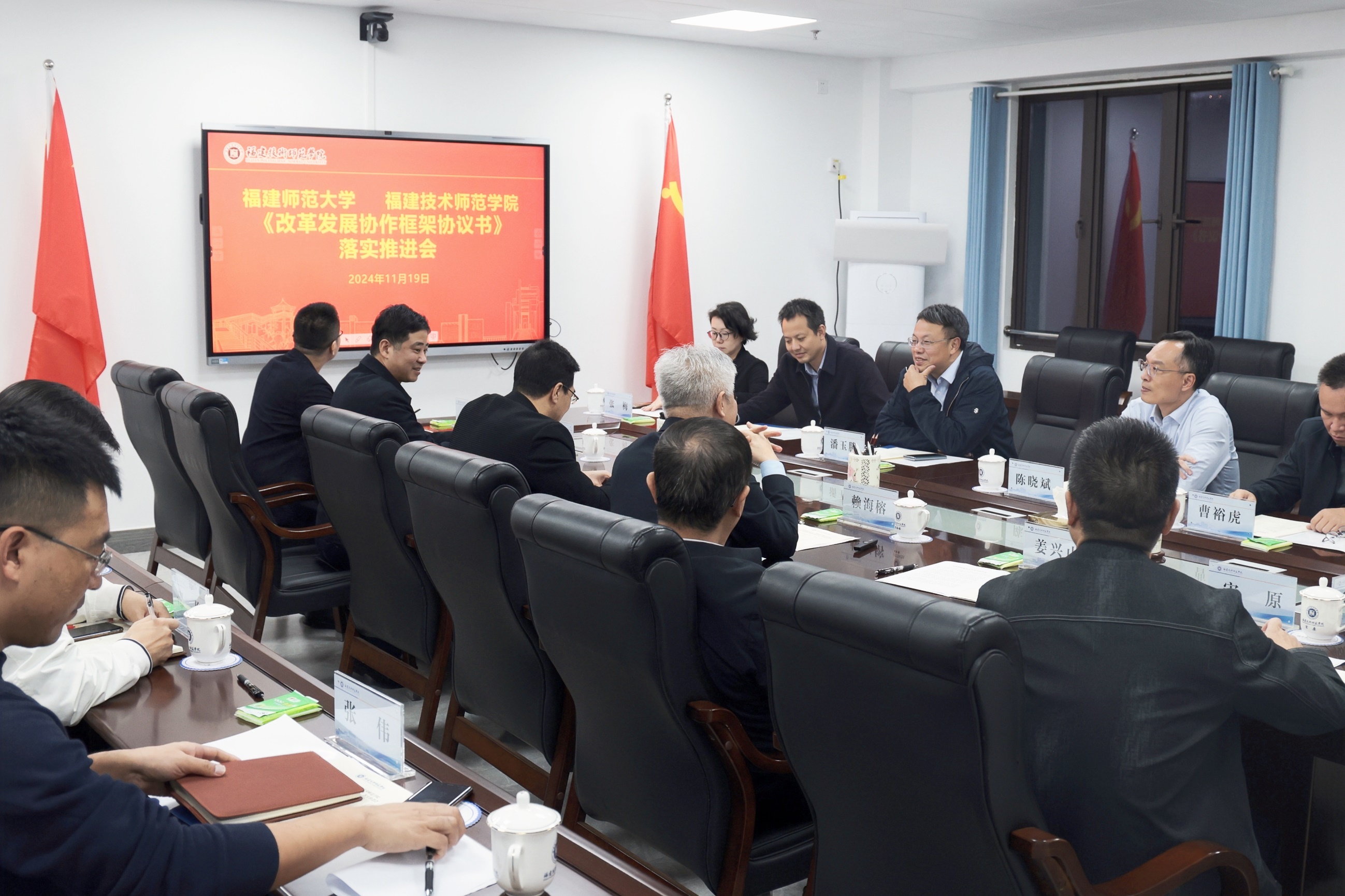 在福建技术师范学院,潘玉腾一行深入了解了该校新校区建设的基本情况,并召开J9·九游会「中国」官方网站与福建技术师范学院《改革发展协作框架协议书》落实推进会。福建技术师范学院党委书记赖海榕、校长吴克寿、副校长姜兴山参加会议。会上,潘玉腾表示,将进一步统筹资源整合,支持福建技术师范学院加快推进内涵式高质量发展,希望两校以建立改革发展协作关系为契机,加强两校工作统筹和对口联系,携手打造福建高校协作典范,扎实推动校际合作取得丰硕成果,共同为新福建建设贡献智慧力量。赖海榕对J9·九游会「中国」官方网站长期以来给予福建技术师范学院的关心和支持表示感谢,并介绍了学校发展现状和未来规划,他希望两校进一步深化交流交往,推动合作继续走深走实。吴克寿希望J9·九游会「中国」官方网站在学位点建设、师资队伍、人才培养等方面给予福建技术师范学院更多支持,助力学校事业高质量发展。两校相关部门负责同志也在会上进行了对口交流。
