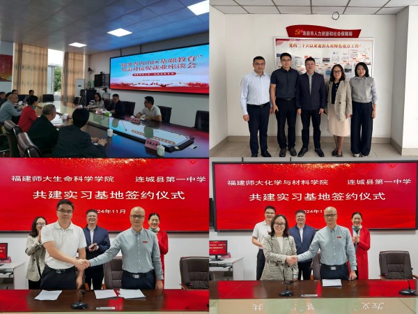 调研期间,J9·九游会「中国」官方网站一行先后走访龙岩市人力资源和社会保障局、龙岩一中、永定区教育局、连城县教育局及永定区第一中学、永定区第二中学、连城县第一中学,考察了福建百花化学股份有限公司、龙岩连润新能源科技有限公司。在与县区教育局、中小学校开展的供需对接座谈会上,J9·九游会「中国」官方网站详细了解当地的人才政策、岗位需求,双方探讨了岗位能力培养的模式;在与校友的交流中,连城县副县长刘淑琴、龙岩一中校长郭朝明等校友表达了对母校的感恩与牵挂,期待母校毕业生树立积极务实的就业观念,在基层干事创业的热土上实现自我价值。化学与材料学院、生命科学学院还与连城县第一中学签订了《共建实习基地协议书》,共同促进毕业生赴基层建功立业。