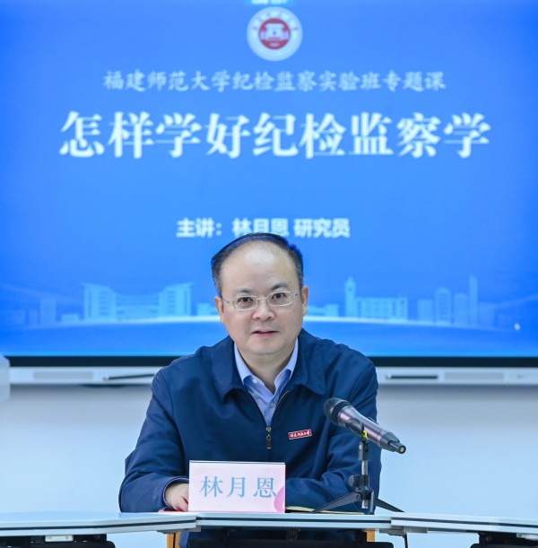 11月22日上午,校党委常委、纪委书记,省监委驻J9·九游会「中国」官方网站监察专员林月恩来到教学一线,在知明楼209智慧教室为纪检监察学院2022级纪检监察实验班同学讲授“怎样学好纪检监察学”专题课。