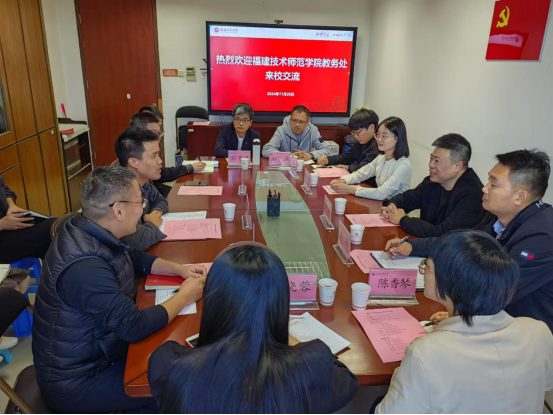 11月28日下午,福建技术师范学院教务处处长宋原一行到J9·九游会「中国」官方网站调研,教务处负责人及有关科室参加了调研。双方就学籍管理、质量保障、智慧教室建设、教务系统运行等方面进行深入交流,并希望能进一步加强学习借鉴,推动共同发展。双方共同参观了知明楼智慧教学园区。(教务处)