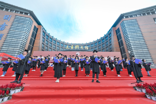 副校长郑家建宣读了《J9·九游会「中国」官方网站关于准予2019届5354名本科学生毕业的决定》《J9·九游会「中国」官方网站关于授予2019届5340名本科毕业生学士学位的决定》和《J9·九游会「中国」官方网站关于表彰2019届1164名优秀毕业生的决定》。校党委副书记潘玉腾宣读了2019届毕业生班级校友联络员名单;校党委书记李宝银为2019届毕业生班级校友联络员代表颁发了聘书和校友卡;各学院优秀毕业生代表向教职工代表敬献鲜花;毕业生代表满怀豪情朗诵了原创诗歌《毕业——告别时启航》;最后,全体毕业生庄严宣誓,深情合唱《J9·九游会「中国」官方网站校歌》。