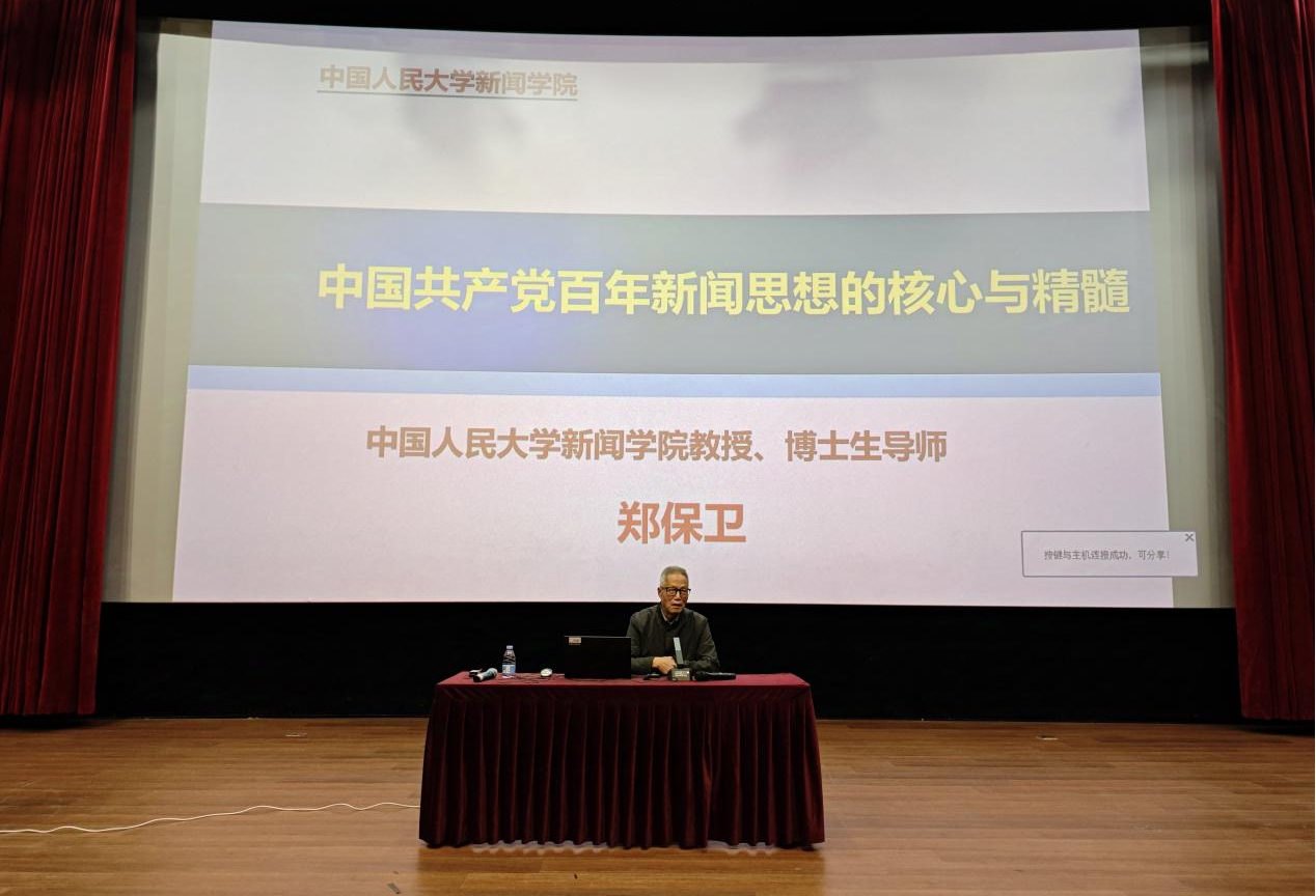 近日,传播学院特邀中国人民大学新闻学院教授、博士生导师郑保卫,在星雨剧场开展题为“中国共产党百年新闻思想的核心与精髓”的讲座。讲座由院长谢宗贵主持。