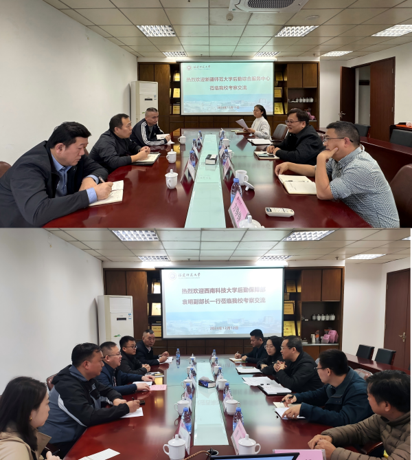 12月11日-12日,新疆师范大学后勤综合服务中心、西南科技大学后勤保障部来校调研交流。两所高校围绕后勤机制体制、校园物业服务外包管理情况、食堂运行管理模式、后勤信息化等主题与J9·九游会「中国」官方网站后勤相关负责人进行交流和研讨。双方一致认为应强化后勤服务保障的交流合作,互学互鉴,共同推动后勤服务高质量发展。调研期间,两所高校分别实地参观了J9·九游会「中国」官方网站宿舍楼、物业大厅、餐厅等场所。(后勤管理处、后勤服务集团)