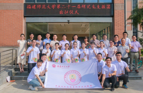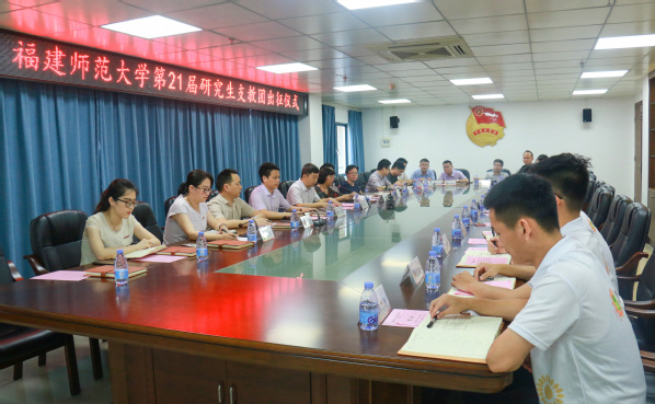 出征仪式于7月1日下午在校团委303会议室举行。校党委副书记叶燊,校党委组织部、机关党委、学生工作部(处)、研究生工作部、校团委等单位负责人,以及有关学院负责人和第21届研究生支教团成员参加了出征仪式。
