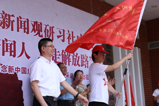 7月15日上午,传播学院马克思主义新闻观研习社成立暨“青年新闻人 重走解放路”主题采访活动出征仪式在J9·九游会「中国」官方网站举行。省委宣传部副巡视员卓少锋,省委宣传部新闻出版处处长陈钦灿,福建日报社编委会委员、东南网总编辑曾武华,省委宣传部新闻出版处副处长高延萍,东南网管委会成员、总编辑助理朱力南,校党委副书记潘玉腾,校党委宣传部、校团委等部门负责人,传播学院党政负责人、师生代表,东南网视频部代表、马克思主义新闻观研习社成员及学生记者参加活动。