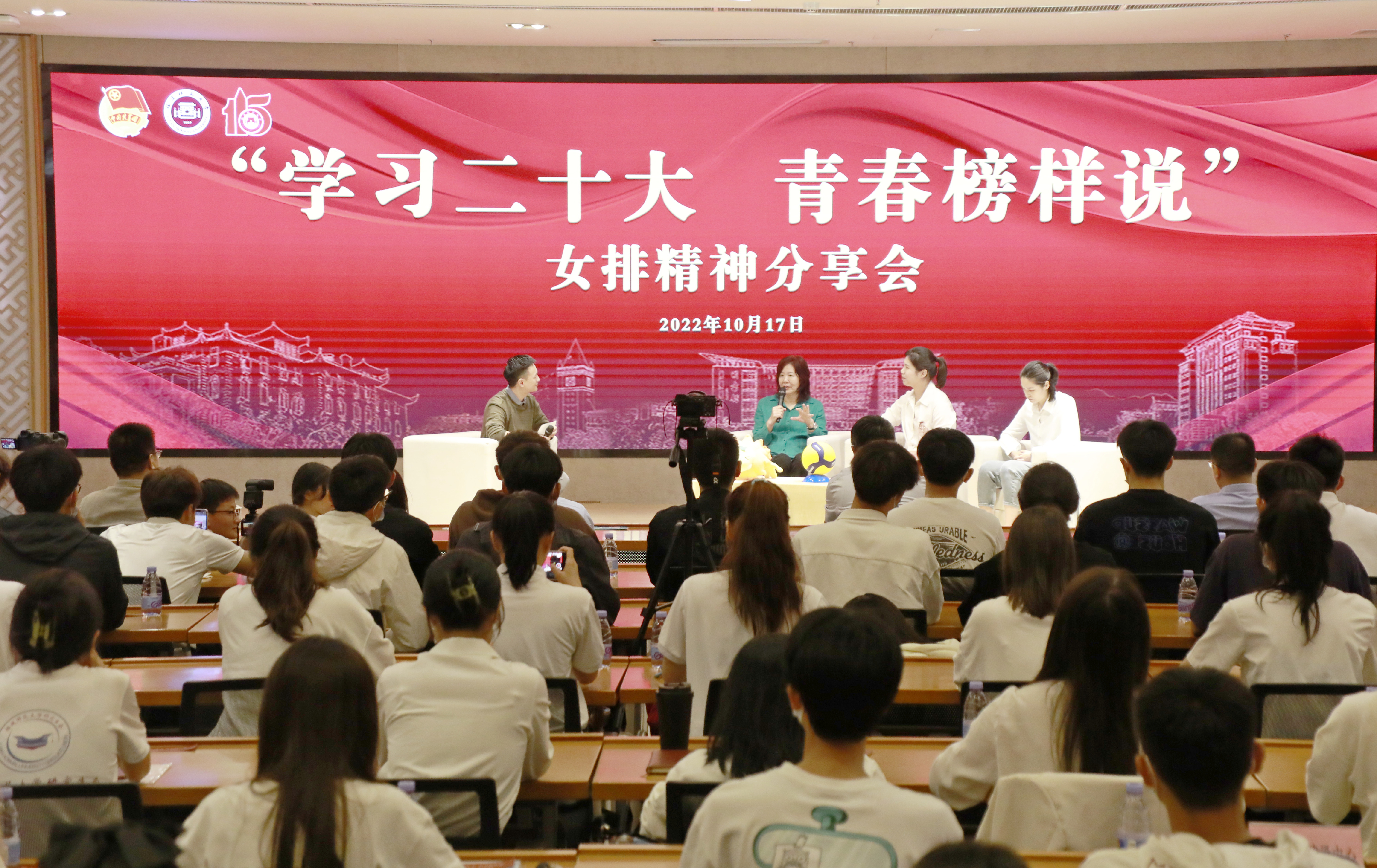 在“女排精神分享会”上,郎平与徐云丽、林莉面向师生分享了中国女排的成长经历、奋斗历程和夺冠荣耀,以生动翔实的事例诠释了“女排精神”的深刻内涵,勉励青年学生弘扬“祖国至上、团结协作、顽强拼搏、永不言败”的“女排精神”,刻苦学习、砥砺成才,争做堪当民族复兴大任的时代新人。分享会现场,互动频频、气氛活跃,拼搏精神、奋斗精神激励着师生。