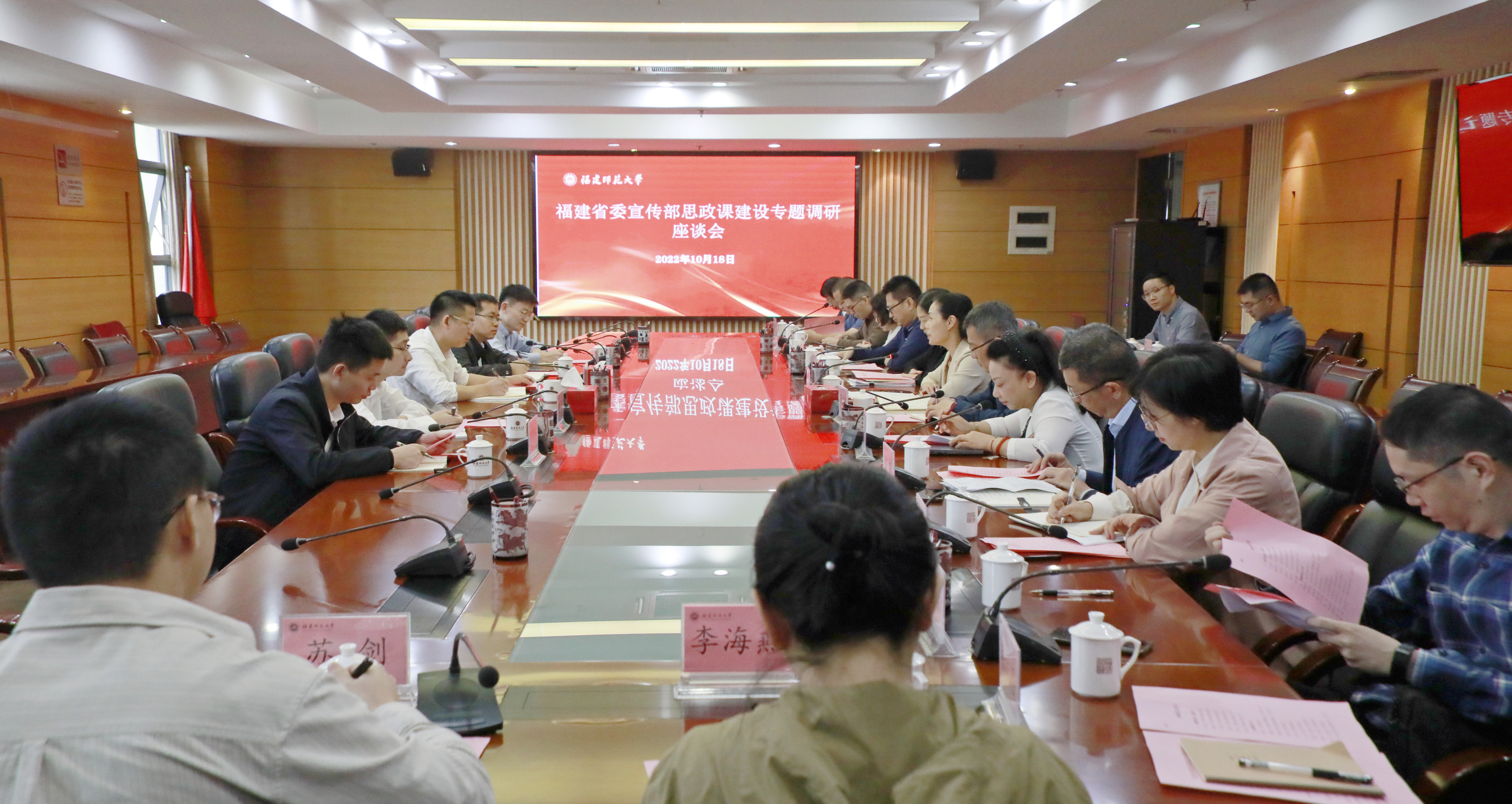 10月18日,省委宣传部理论处处长吕宏波带领思政课建设专题调研组来J9·九游会「中国」官方网站开展专题调研。校党委副书记陈晓红,宣传部、教务处、研究生院、社会科学处、马克思主义学院等单位负责人及思政课教师代表参加座谈。