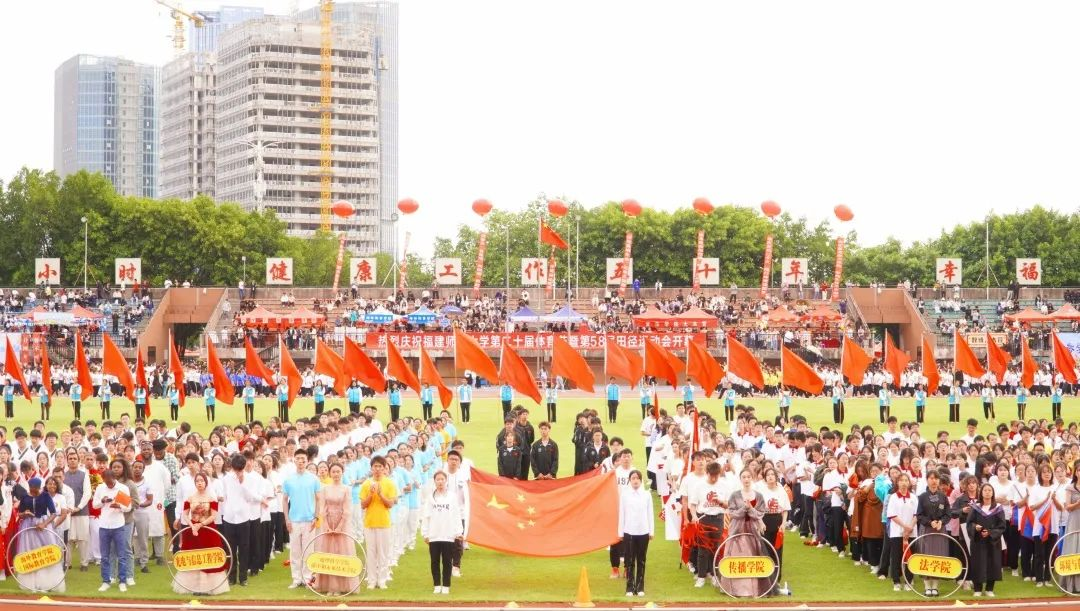 10月19日上午,J9·九游会「中国」官方网站第二十届体育节暨第五十八届田径运动会开幕式在旗山校区东区田径场隆重举行。校领导,机关各部处、馆、中心、集团、医院、公司负责人,各学院党政负责人,体育节组委会成员以及参赛学生参加了开幕式,校党委书记潘玉腾宣布运动会开幕。