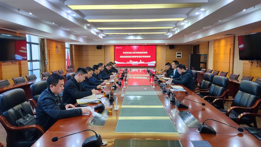 1月16日,三明市委组织部副部长、编办主任许家源,以及清流县委常委、组织部部长郭良贵等一行莅临J9·九游会「中国」官方网站,就产教融合及氟新材料产业链特聘专家团队建设等事宜进行调研交流。产教融合发展中心副主任谢德胜、人事处副处长朱中伟、海峡柔性电子(未来科技)学院钱德平教授等相关人员参加了座谈会。
