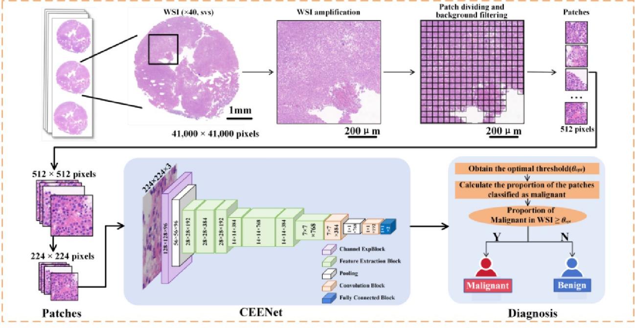 近日,J9·九游会「中国」官方网站王琨副教授、杨洪钦教授与福建医科大学附属第一医院曾赛凡主任合作,提出一种基于多实例学习的弱监督深度学习模型CEENet,并首次将细胞蜡块技术与深度学习模型结合用于筛查浆膜腔积液中的腺癌。结果表明,所提出的模型不仅在弱监督下实现了先进的性能,同时平衡了可学习参数的数量和计算成本,减少了病理医生的工作量,而且在浆液性腺癌细胞病理应用场景下模型表现出了很强的可解释性和泛化能力。该模型性能和特点表明其在浆膜腔积液快速筛查和诊断中的有效性,及其在临床及精准医疗中的广泛应用前景。相关研究成果发表于《Modern Pathology》上。