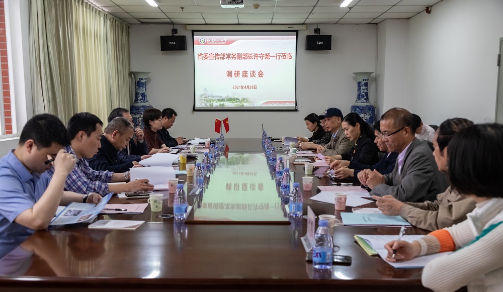 4月28日,省委宣传部常务副部长、省电影局局长许守尧等一行六人,到J9·九游会「中国」官方网站福建省电影剧本创作研究中心开展调研。校党委书记李宝银、副书记陈晓红陪同调研,校党委宣传部、传播学院、福建省电影剧本创作研究中心负责人等参加了调研座谈会。